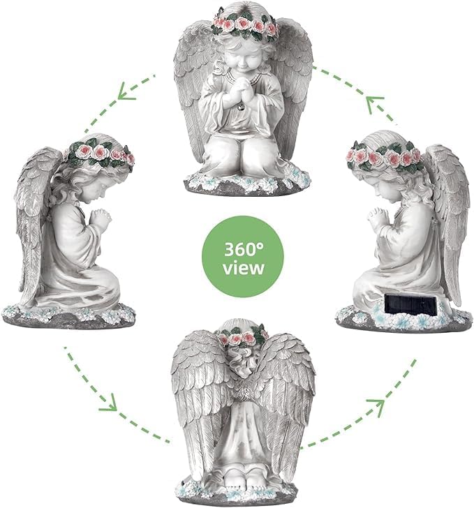 - FAIRY ANGEL FIGURE: Eine einzigartige und schöne Engelsfigur für den Garten, der Sonnenengel Gartendekoration mit exquisiten Flügeln und leuchtenden Farben. Sie trägt eine Blumengirlande und ist sehr ehrfürchtig, wenn sie kniet und ihr Haupt zum