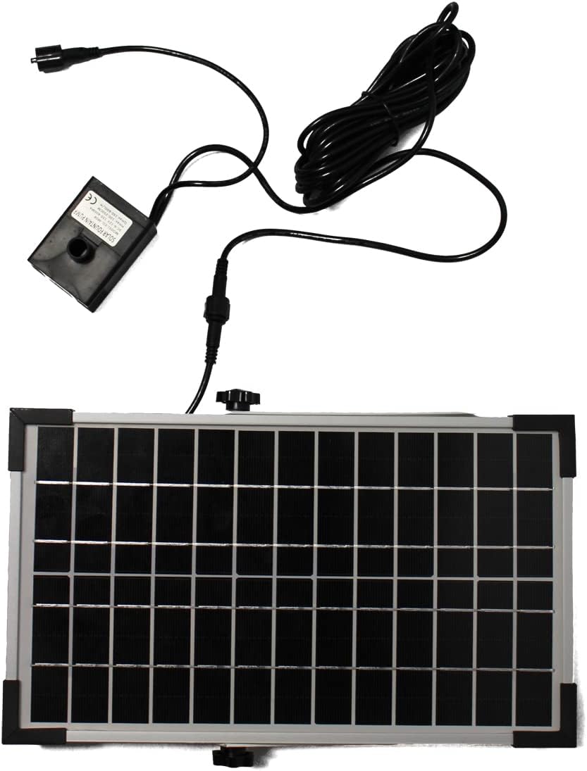 - Masse: Höhe: 48 cm, Breite:50 cm Tiefe: 44 cm Solarpanel: 6W 18x30 cm mit Wandaufhängung. Wasserpumpe: 450 L/h LED-Beleuchtung: Drei Spots mit je 4 kalt-weissen LED's