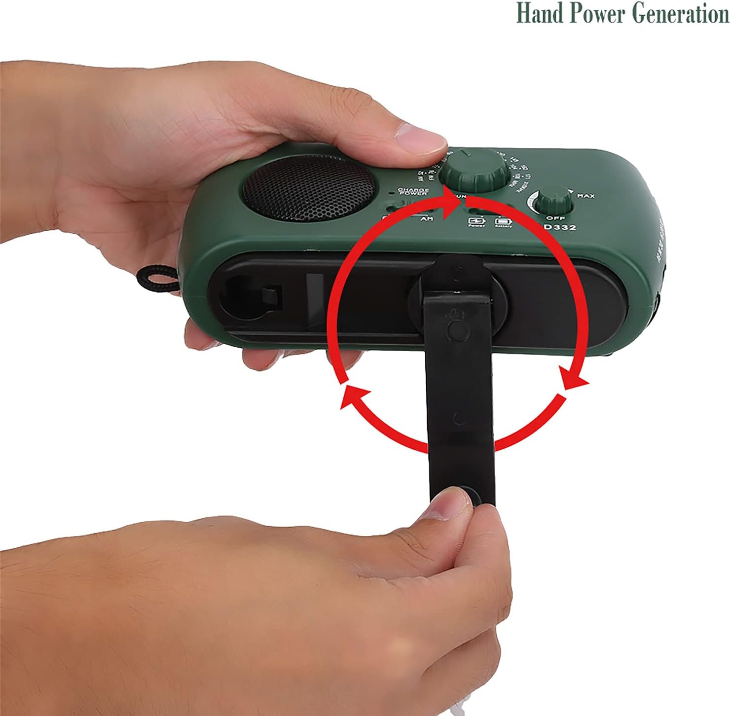- 【3 LED Taschenlampe】 Unser Handkurbelradio hat eine kompakte Grösse, tragbar im Rucksack oder zum Mitnehmen an der Hand. Dieses Produkt mit 3-LED-Taschenlampe hat eine hohe Helligkeit und fügt ein Radio mit eingebautem hochwertigen Lautsprecher