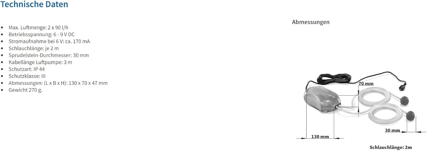 - Max. Luftmenge 2 x 90 l/h