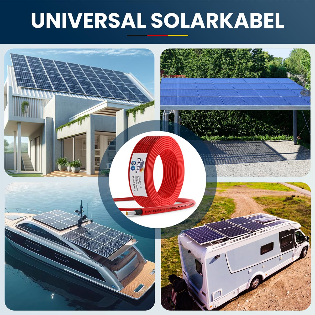 - Solarkabel Verlängerung ANFIL 4mm2/12AWG Solarpanel Photovoltaik Verlängerungskabel Solar PV Kabel für Fachgerechter Solarsystem Einbau ist ein hochwertiges solar produkt, das speziell für die professionelle Installation von Solarmodulen für