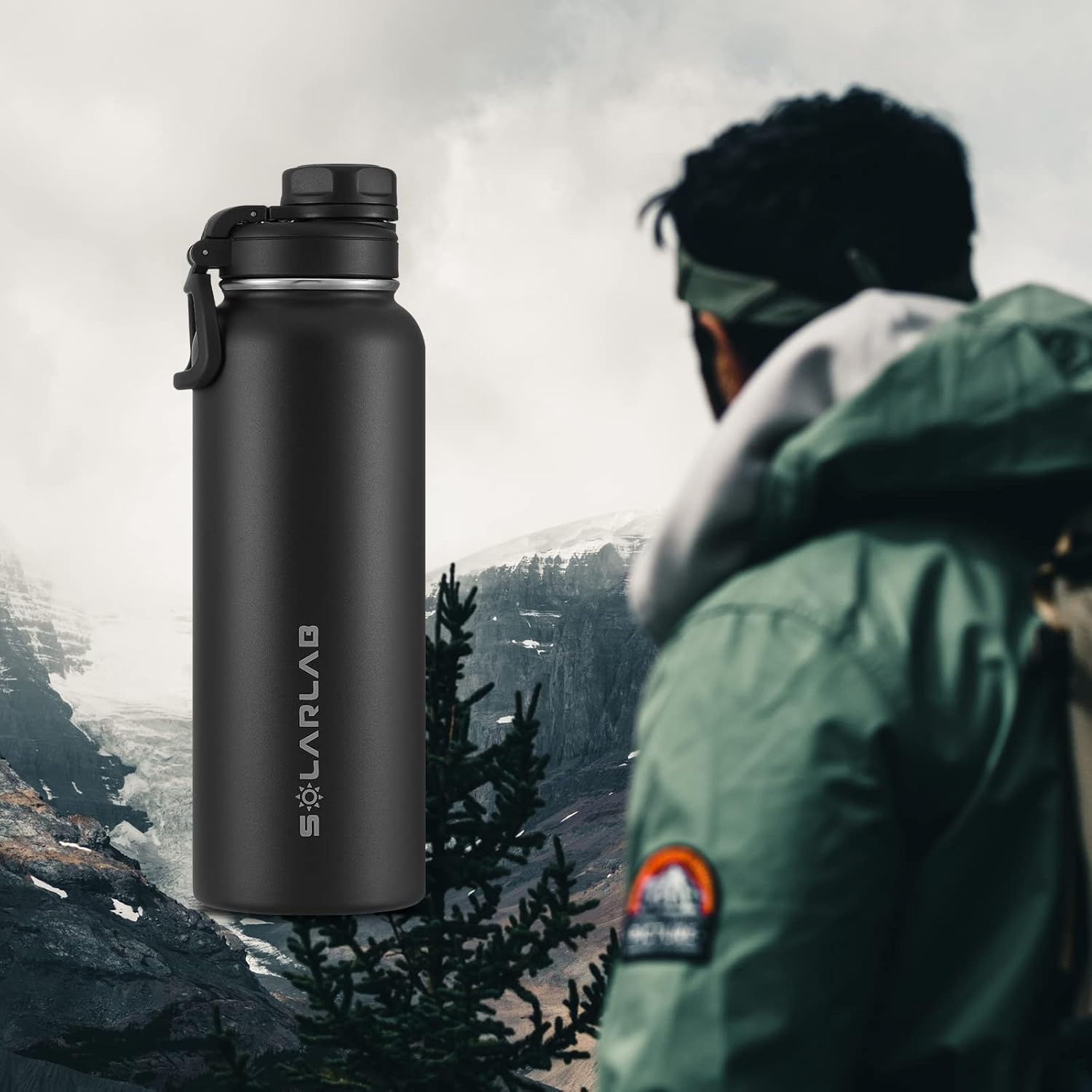 SOLARLAB Trinkflasche edelstahl - Thermoflasche Isolierflasche Thermoskanne 1l für heisse und kalte