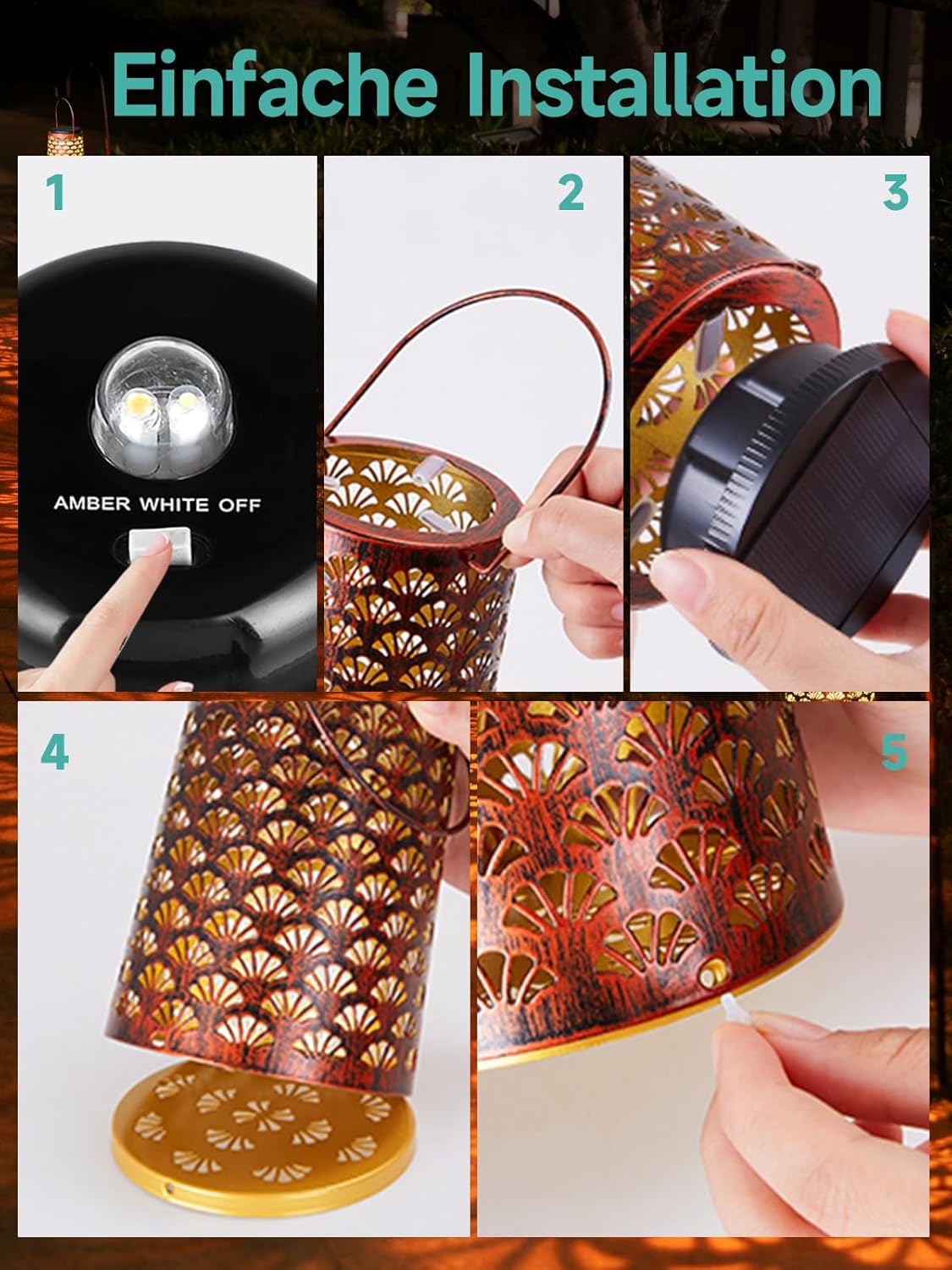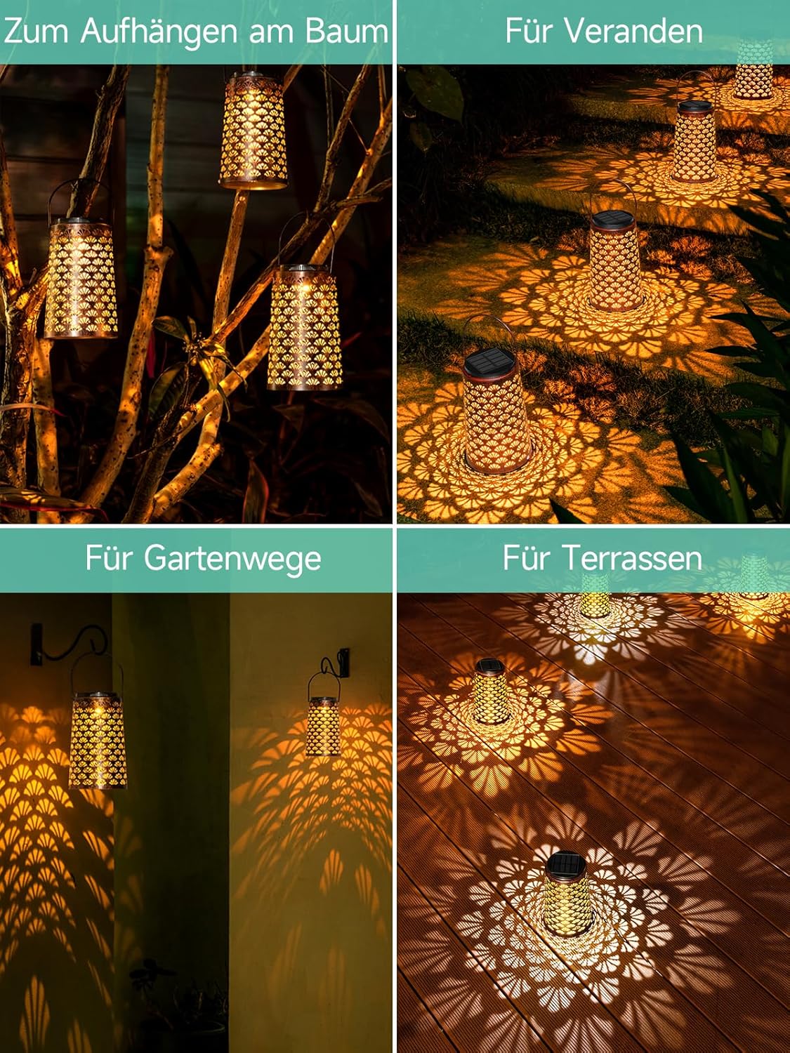 - 【Retro-Aussehen aus Metall】 Die Solar Gartenleuchte haben ein hohles Retro-Design und erzeugen einzigartige Muster im Retro-Stil, die sehr angenehm für das Auge und elegant sind und Ihnen ein Gefühl von Frieden, Süsse, Wärme und Komfort verleihen