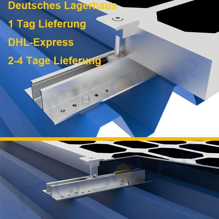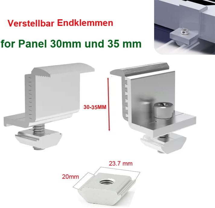 - Befestigungs-Set für 4 x Solarmodul:10 x Alu-Profil je 300x80x35 mm (LxBxH),4 x Endklemme 35mm,6 x Mittelklemme 35mm,40 x Edelstahl-Schrauben, 20 x Gummi-Unterlagen.Deutsches Lagerhaus,1 Tag Lieferung,DHL,2-4 Tage Lieferung.