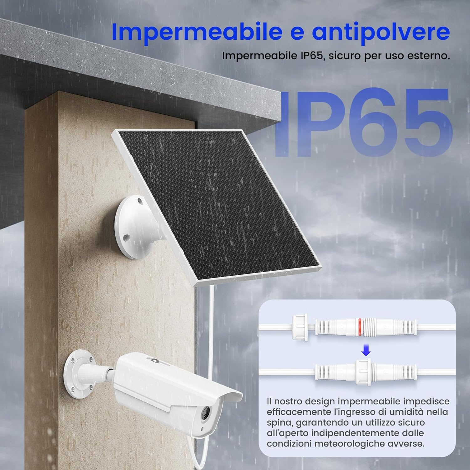 - Wassergeschützt : Der solare Ladegerät ist nach IP65 zertifiziert und bietet umfassenden Schutz vor Regen, Staub und extremen Temperaturen von -20°C bis +50°C. Speziell versiegelte Anschlüsse bieten eine zusätzliche Sicherheitsebene an den