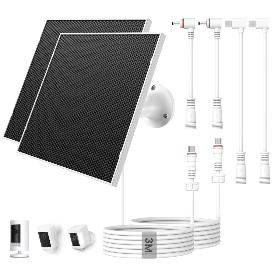 - Kompatibilität : Dieses Solarmodul versorgt kompatible Kameras wie die Ring Stick Up Cam Pro, Spotlight Cam Plus und andere Modelle mit USB-C oder DC Anschluss kontinuierlich mit 6W 5V Strom. Es macht häufige Batteriewechsel überflüssig und