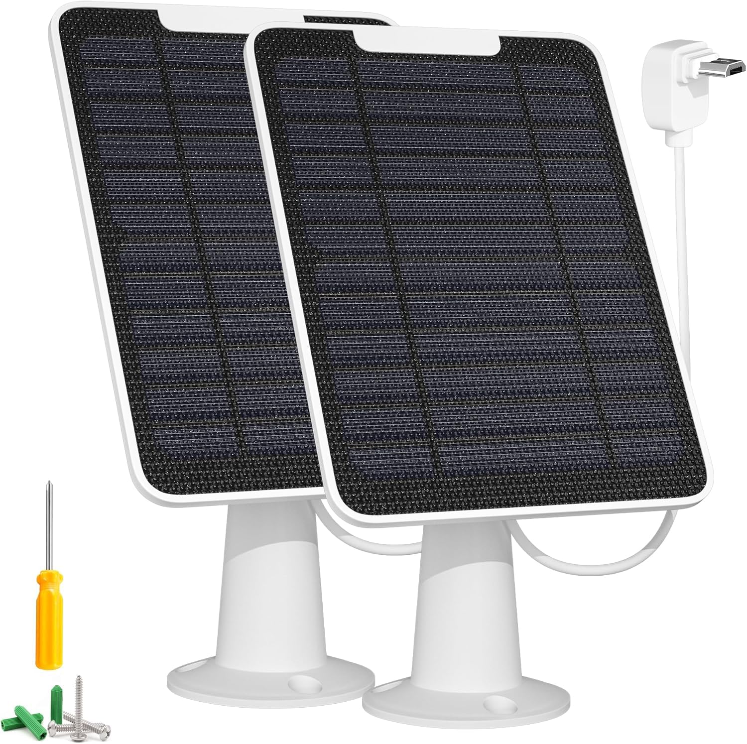 - 【Paket inklusive】 Die Solarpanel-Kits bestehen aus hochwertigen und umweltfreundlichen Materialien, einschliesslich 2 Solarpanel mit 10 Fuss Kabeln, 2*360 Grad Montagehalterung, 2*Schraubbeutel, 160*Kabelbindung, 1*Schraubverzeichnis. Bitte beachten