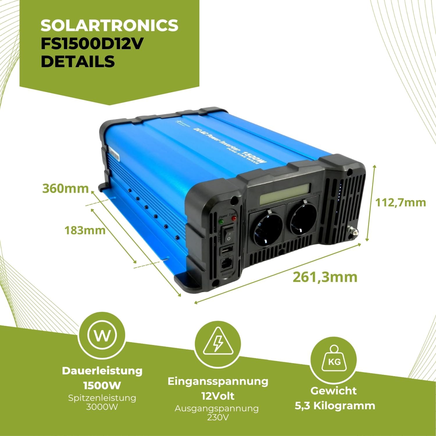 - Lieferumfang: Wandler, Anschlusskabel DC ca. 60 cm,