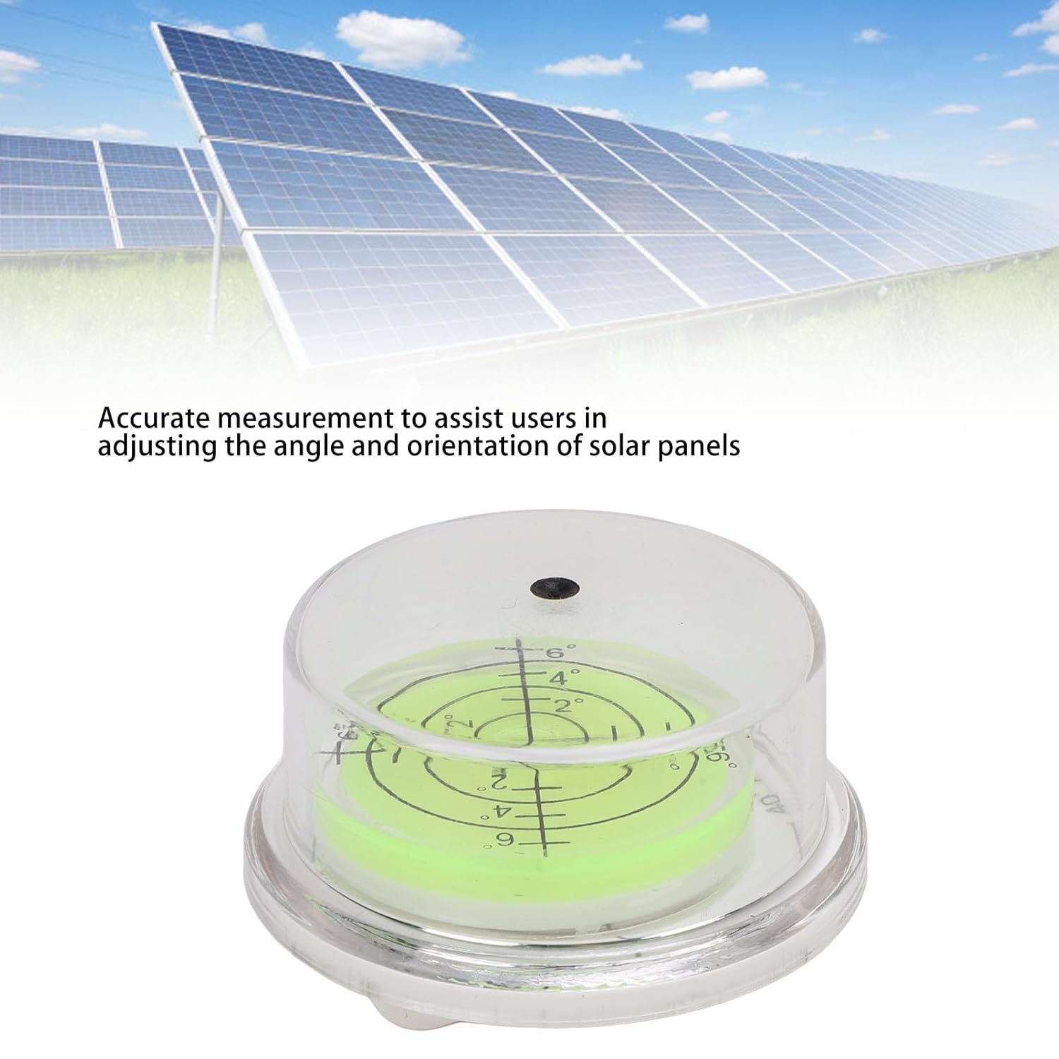 - 【Einfach zu bedienend】 Es ist nur erforderlich, um das Solarpanel so einzustellen, dass der Schatten des schwarzen Punkts in der Mitte der Skalierungsplatte liegt. Sie erhalten den idealen Neigungswinkel für Sonnenkollektoren. Wenn der schwarze