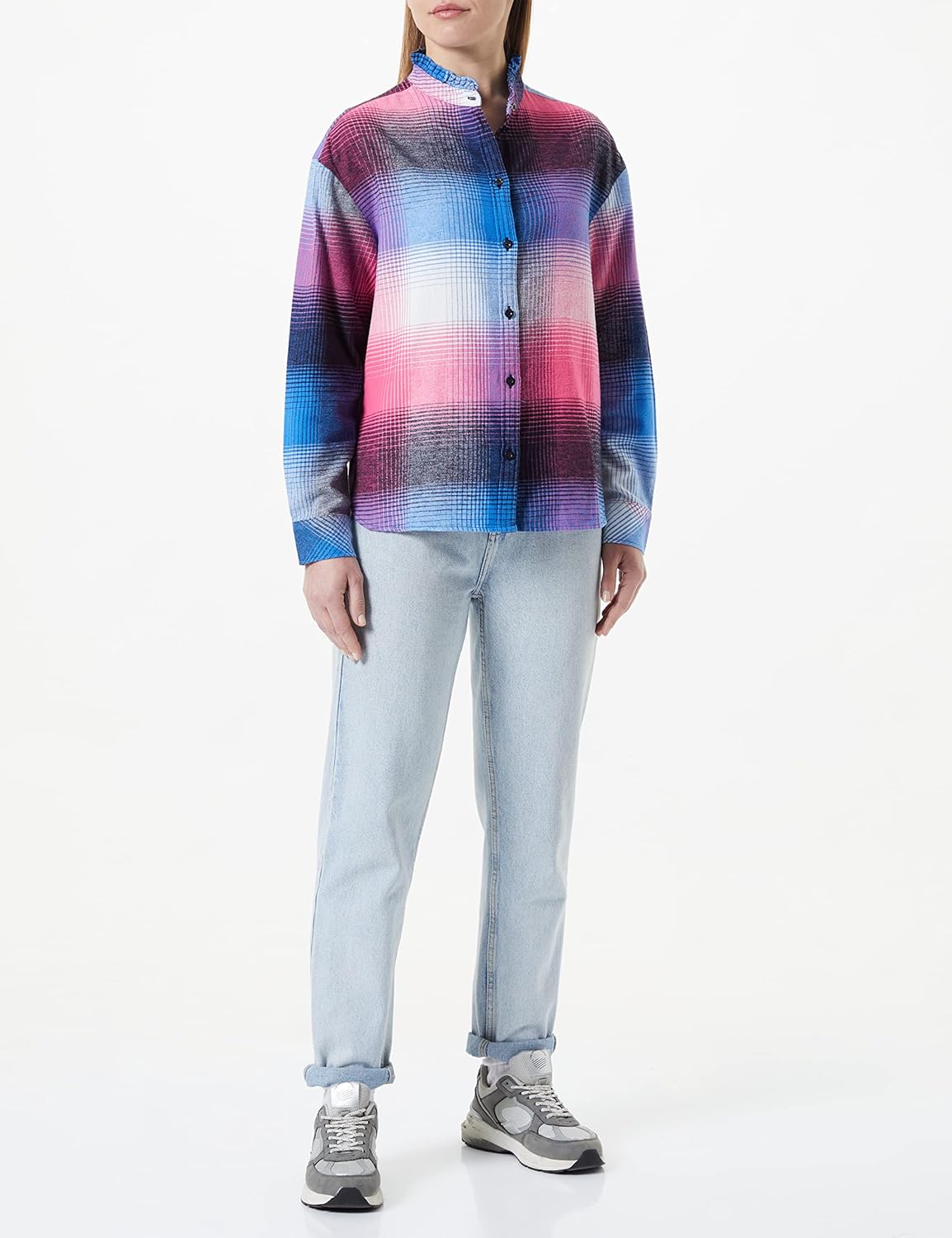 PRODUKTBESCHREIBUNGEN Dieses Hemd ist aus Baumwolle und Flanell in weicher und leichter Qualität. Der Look wird von einem Karomuster ergänzt. Es ist im modischen Stil gehalten. Es punktet mit einem Rüschenkragen. Lange Ärmel mit Manschetten runden den Style ab. Am Rücken wird es von einer Falte geschmückt. Eine Knopfleiste bildet den Verschluss dieses Hemds. Es hat einen abgerundeten Saum. Es hat einen Regular Fit und eine Rückenlänge von 64 cm bei Grösse 36.
