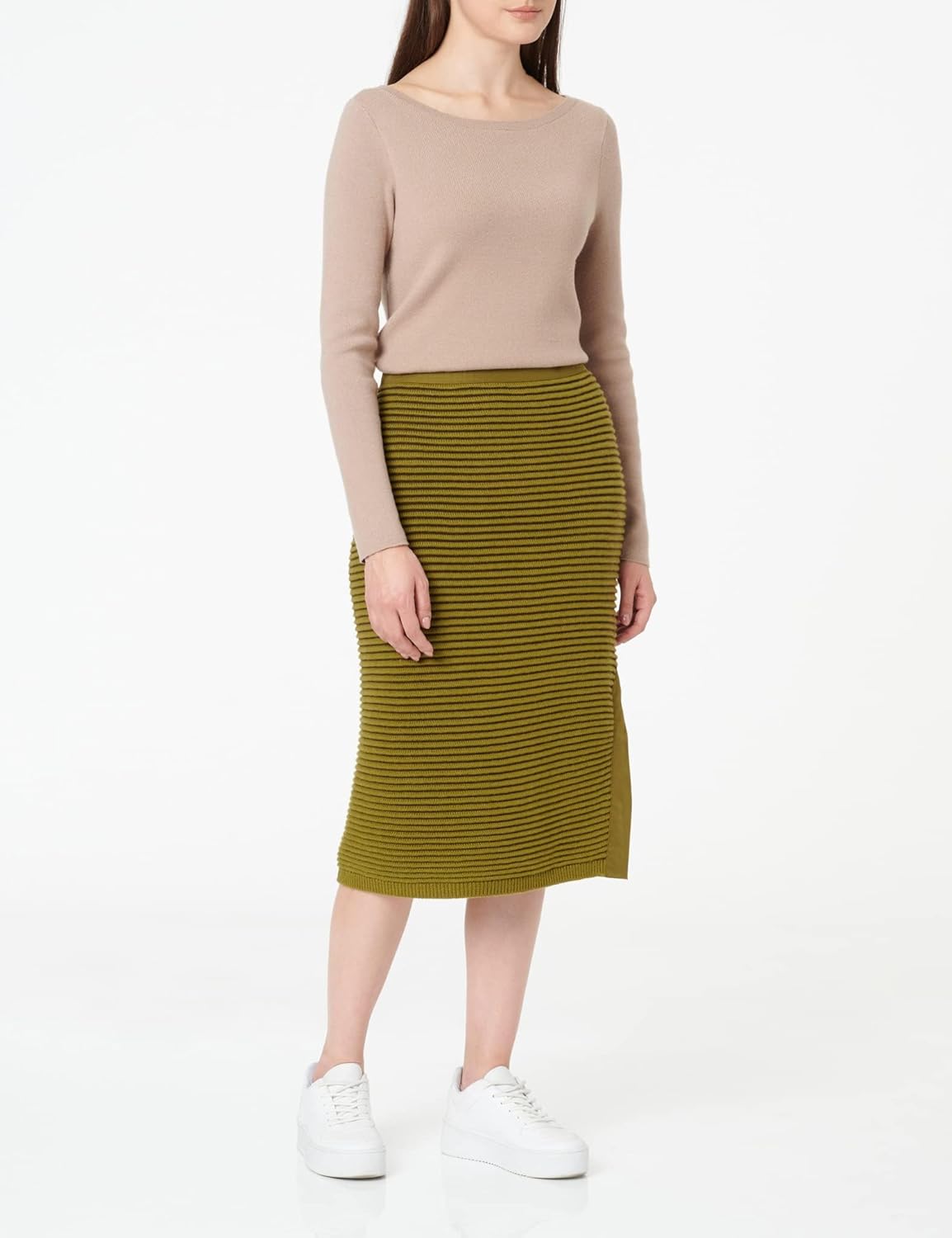 PRODUKTBESCHREIBUNGEN Weicher und hochwertiger Wollmix zeichnet diesen kurzen Rock aus und verleiht ihm einen eleganten Style. Er ist enorm cool für den Bereich der Casual-Fashion dank der Rippstruktur. • Verschlossen wird dieser Rock mit einem verdeckten Reissverschluss. Sein Saum ist seitlich geschlitzt. • Die Bundhöhe ist mittelhoch. • Der Rock verfügt über einen Regular Fit. • Die Seiten haben eine Länge von 66 cm bei Grösse 36.