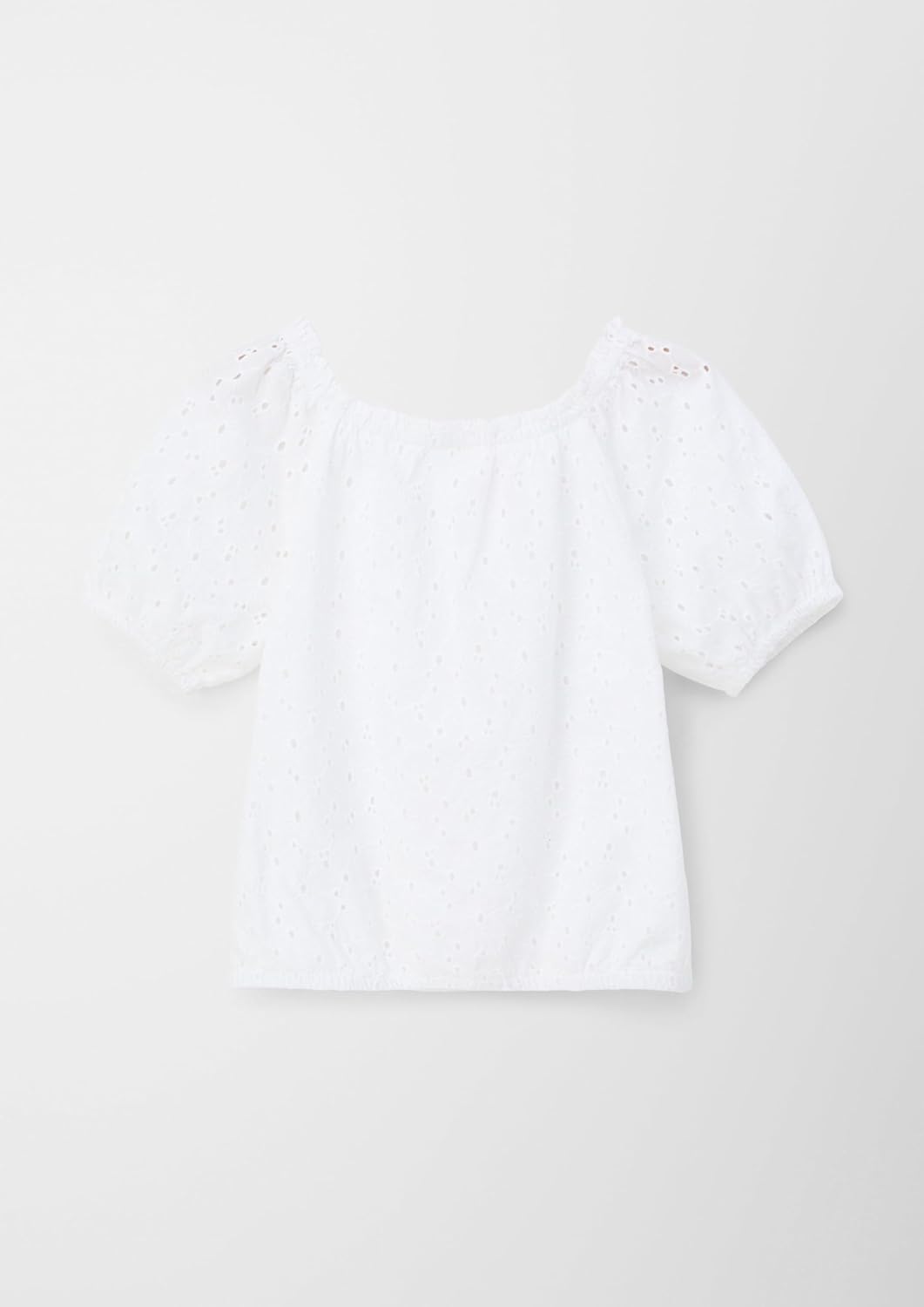 PRODUKTBESCHREIBUNGEN Diese Bluse ist aus feiner Baumwolle. Der Look wird von der Lochstickerei ergänzt. Der Off Shoulder-Ausschnitt ist extrem stylisch. Halblange Ärmel runden den Style ab. Der Saum der Bluse ist mit einem Gummizug ausgestattet und sie ist teilweise gefüttert. Sie hat einen Regular Fit und eine Rückenlänge von 44,5 cm bei Grösse M.