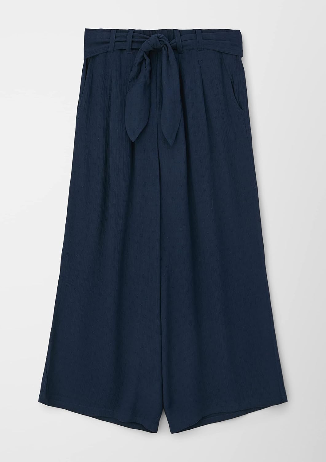 PRODUKTBESCHREIBUNGEN Diese Hose überzeugt durch fliessende Viskose. Die Crêpestruktur sorgt für einen modischen Eyecatcher.Die Hose verfügt über einen Stoffgürtel zum Binden. Dank der Bundfalte sowie des Elastikbunds mit Gürtelschlaufen sitzt sie perfekt.Die Hose besitzt eine High rise Bundhöhe und einen Culotte Schnitt. Ihr Beinverlauf ist in der Flared leg-Form.Ihre Loose Fit Passform sitzt besonders weit an Beinen und Gesäss und wirkt dadurch lässig.Bei dieser Hose ergibt das Beininnenmass bei Grösse 152 ca. 47 cm.