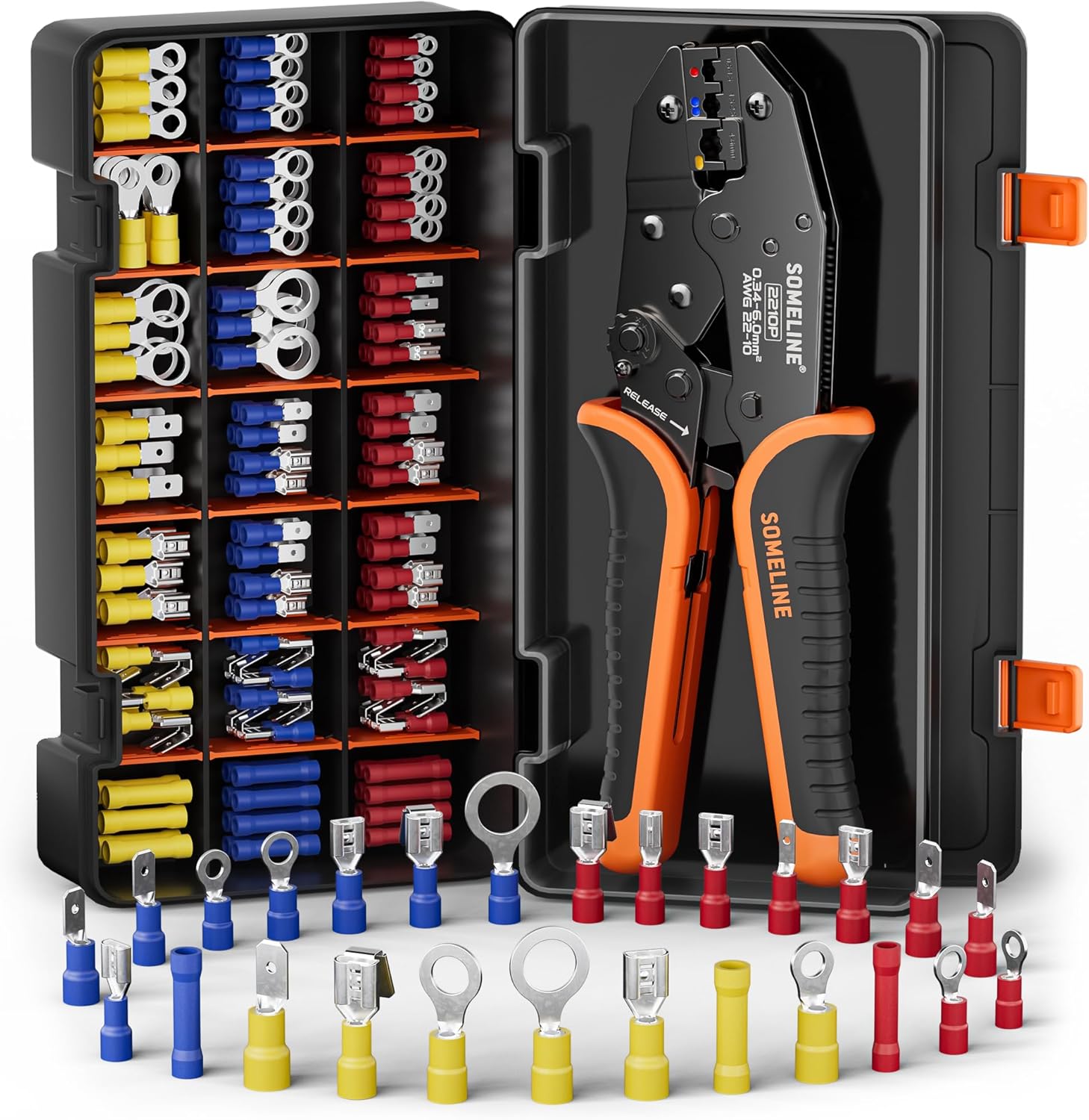 SOMELINE® Crimpzange Kabelschuhe Set, Crimpzangenset, Kabelschuhzange für 0,34-6mm² Kabelhülsen mit