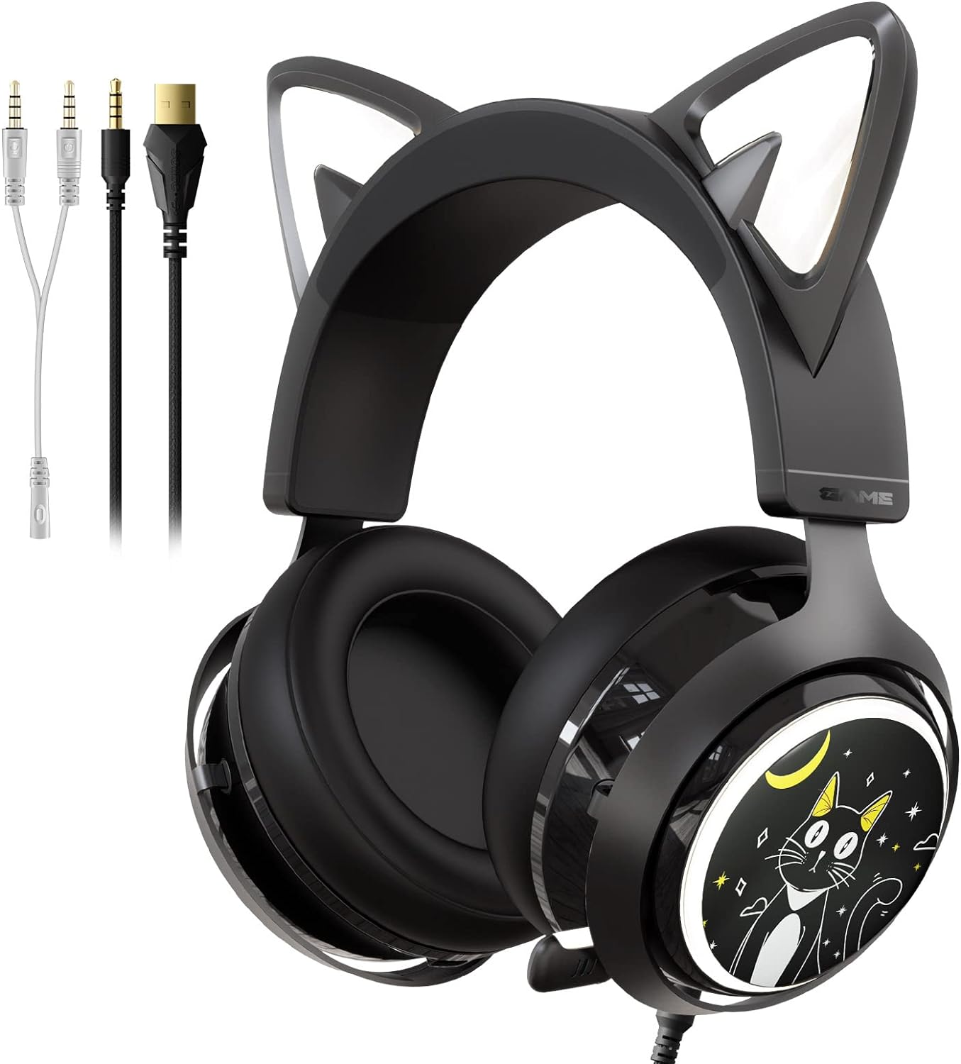 - 【Multi-Plattform-Kompatibel】: Gaming-Headset kompatibel mit 3.5-mm-Anschluss, wie PC, PS4, Mac, Xbox One, PlayStation 4, Nintendo Switch. Bitte beachten Sie, dass der USB-Stecker nur für LED-Licht verwendet wird.