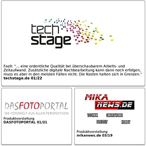 - Wichtig: Scannt nur Einzelbilder, keine Super-8-Filme! • Hohe Scan-Geschwindigkeit: 5 Sekunden pro Bild • Grosses IPS-Farbdisplay mit Diagonale 12,5 cm (5"), Auflösung: 960 x 540 Pixel, für Scan-Kontrolle, Wiedergabe und Einstellungen •