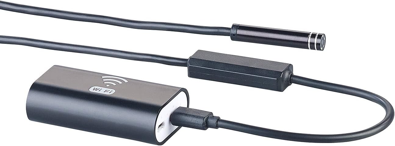 - WiFi-Adapter für kabellose WLAN-Verbindung zu Smartphone und Tablet-PC • Scharfe Bilder ab ca. 4 cm Entfernung, Bild-Winkel: 70° • Magnet, Haken und Spiegel helfen beim Bergen von Schlüsseln, Ringen u.v.m. • Masse Kamerakopf (Ø): 8 mm, Gewicht: