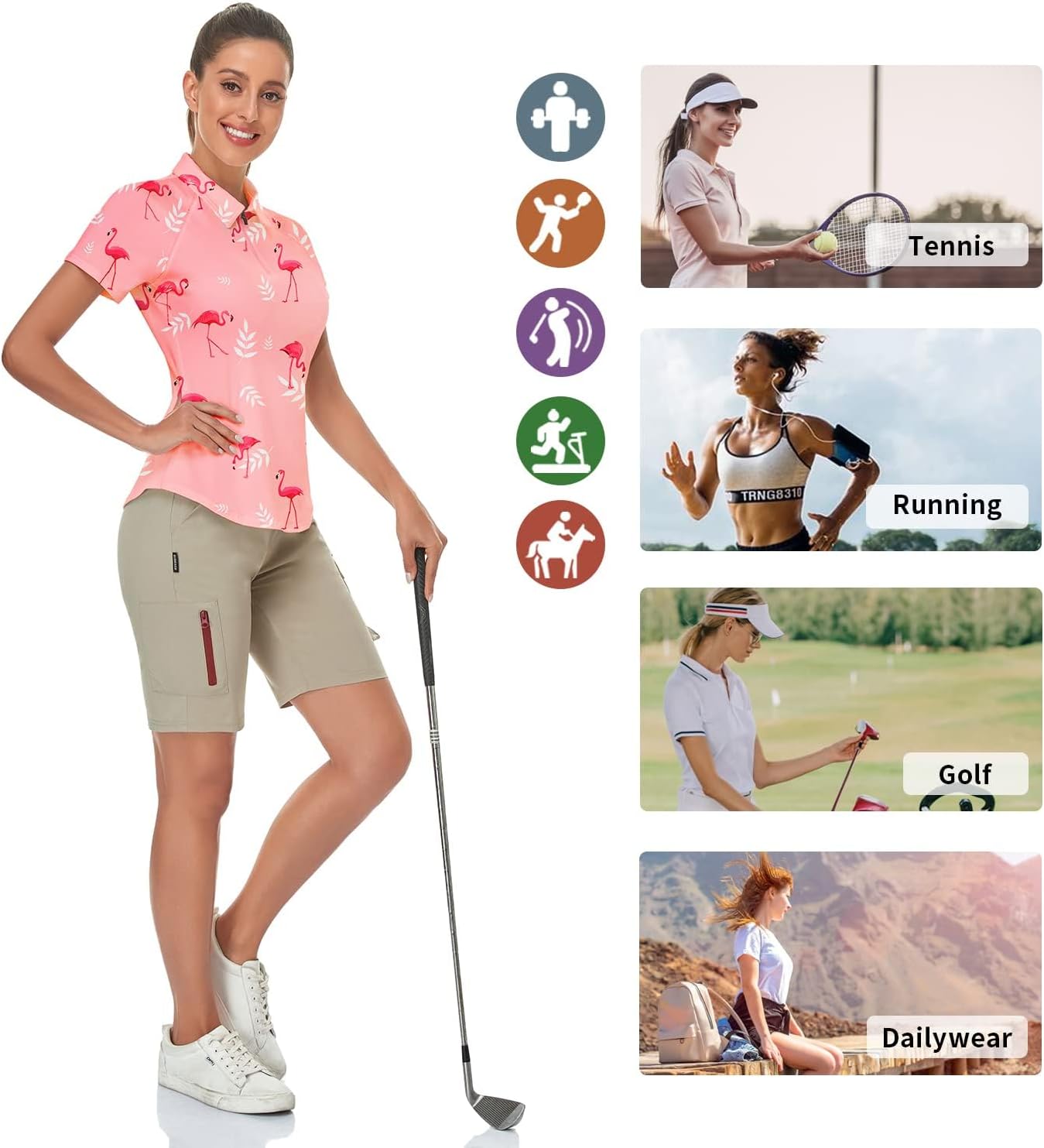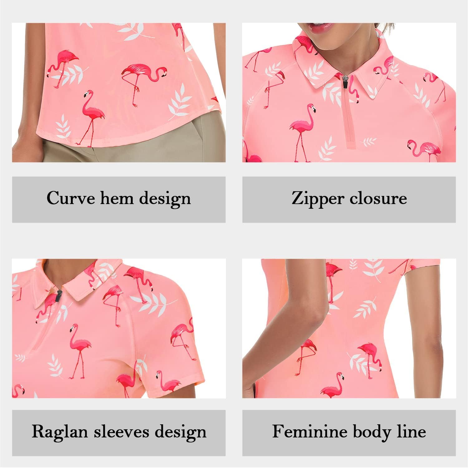 • Golf Polohemd für Damen - Das geschwungene Design des Saums hat eine zusätzliche Länge, die verwendet werden kann, um während des Trainings in die Hose zu tauchen. Zeigen Sie Ihre Taillenkurve und bequemer für den Sport.
