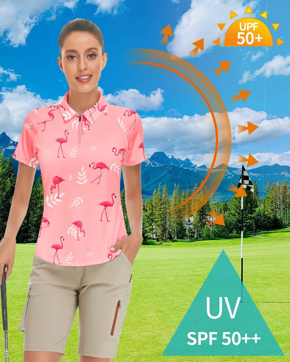 • Poloshirt Damen Kurzarm - aus elastischem Material, schlank und leicht, beschleunigt effektiv den Feuchtigkeitstransport von der Haut, um den ganzen Tag kühl und trocken zu bleiben. UPF 50+ vermeidet die direkte Sonneneinstrahlung der Haut.