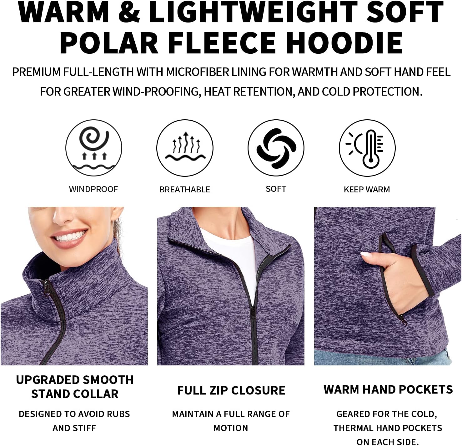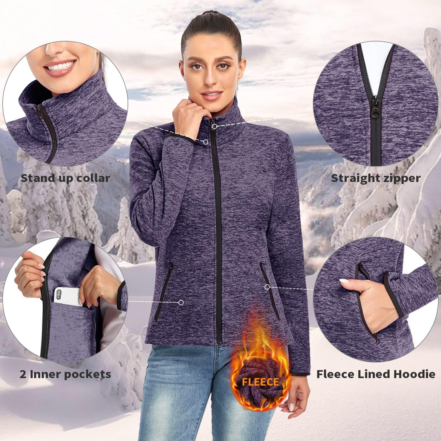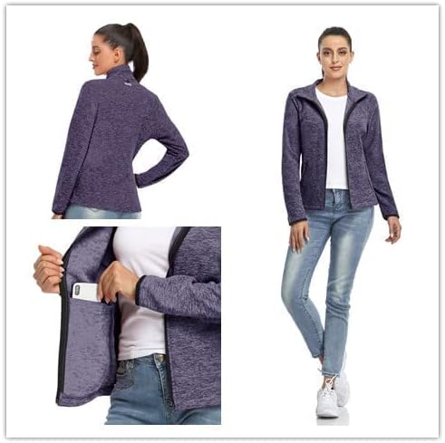 Soneven Fleecejacke Damen, Damen Fleece Jacke mit Durchgehendem Reissverschluss Langärmlig Leicht Fu
