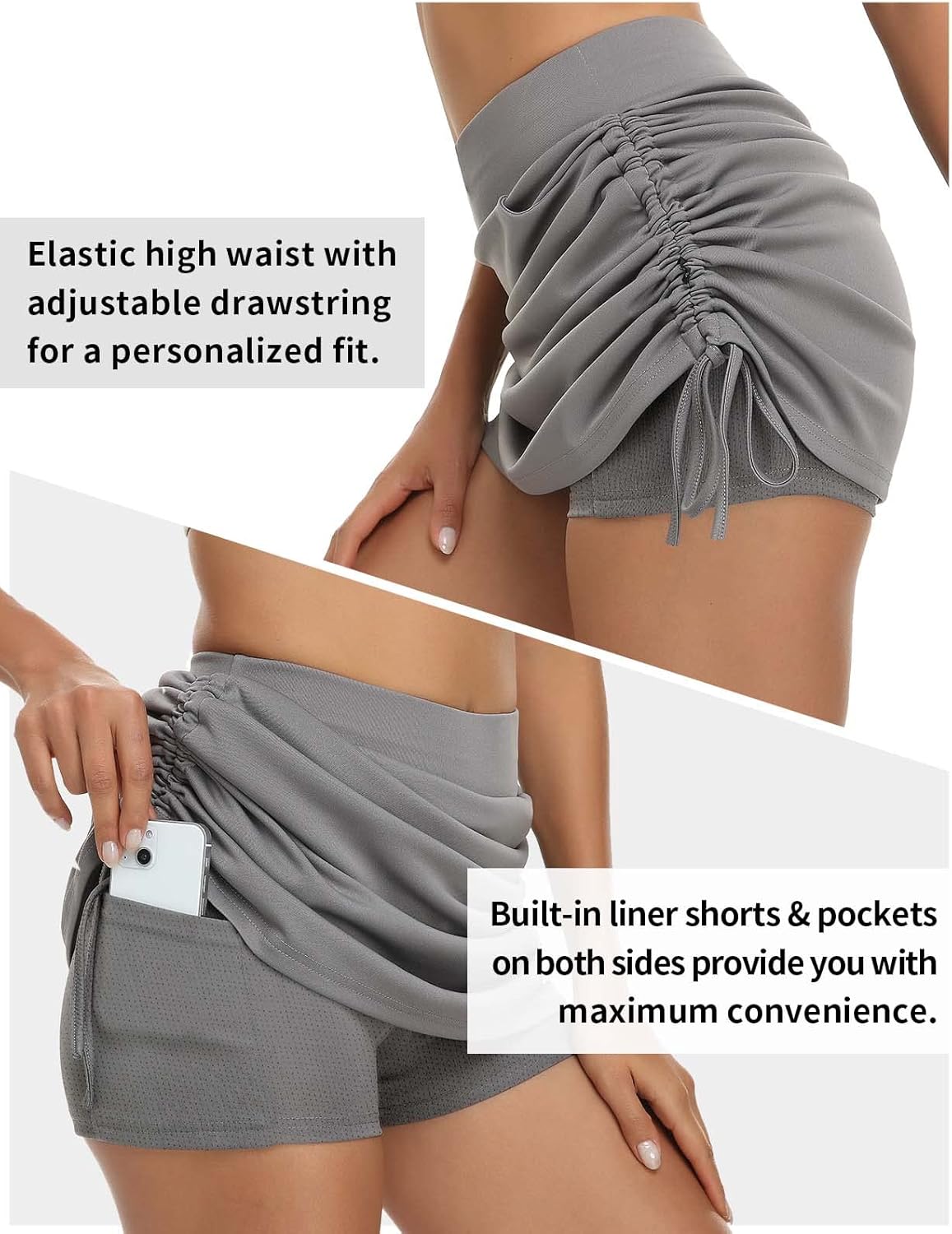 - ✨【Hosenrock kurz mit verstellbarem Kordelzug an der Seite】Tennisrock Damen kann von einem 50cm bis zu einem 30cm Kurzrock eingestellt werden. Es ist eine Mikro-A-Linien-Version. Die Rocklänge ist bei dicken Oberschenkeln figurfreundlicher und kann