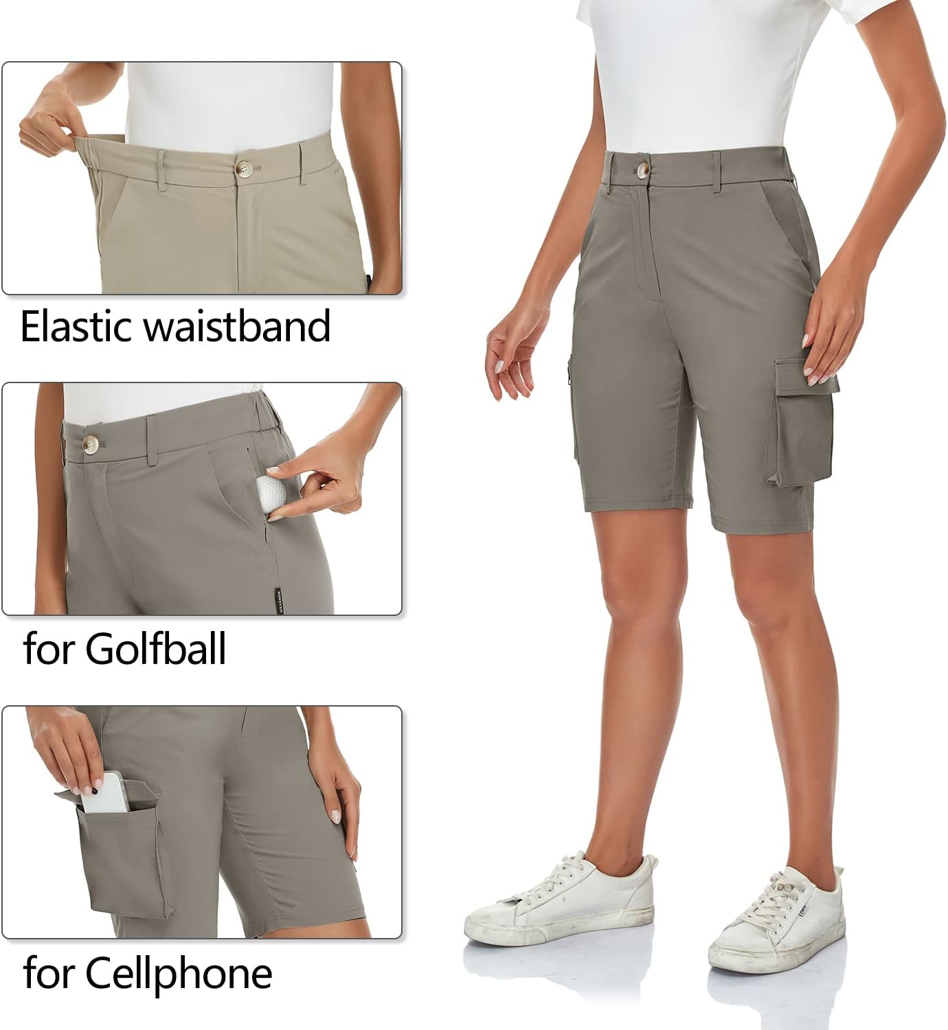 - Cargo Shorts Damen - Insgesamt 6 Taschen, davon 1 Golftasche links, 2 Einschubtaschen, 1 seitliche Reissverschlusstasche, 1 Utility-Tasche und 1 Tasche oben rechts auf der Rückseite der Shorts, Taschen können Handys, Geldbörsen, Karten und mehr