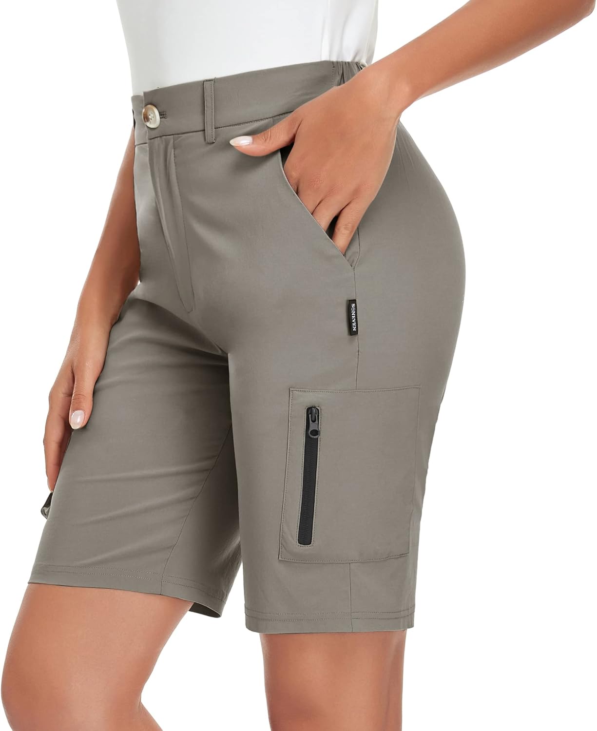- Wanderhose Damen Sommer - Die Shorts sind knapp über dem Knie lang und haben eine gerade Regular-Passform für einen schlichten Look. Hoch tailliertes Design mit bequem weichem Bund für Bauchkontrolle. Dünnerer Stoff für den Frühling geeignet.