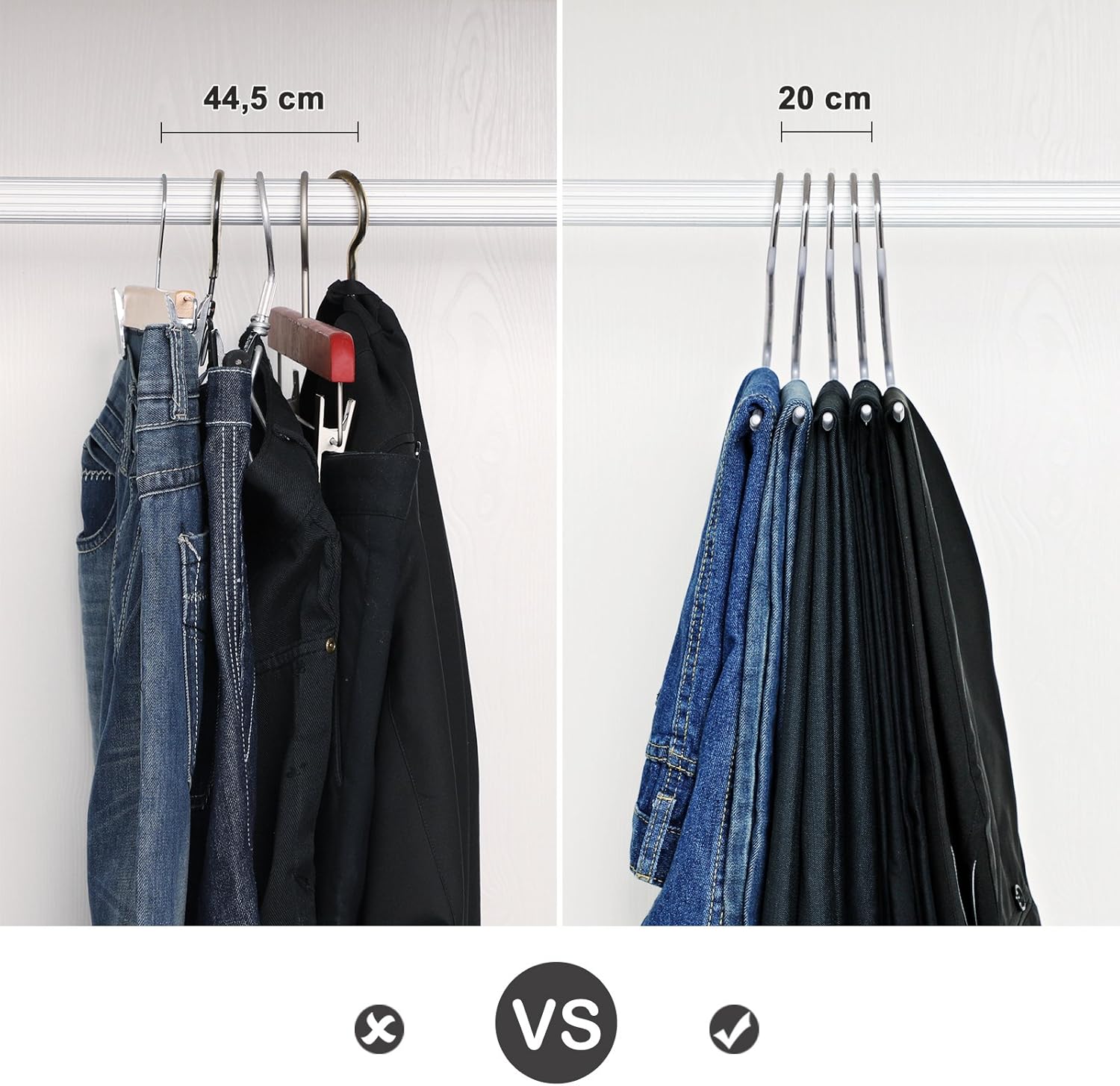 - PLATZSPAREND: Mit einer Stärke von 5 mm nimmt der verchromte Metallbügel wenig Platz in Ihrem Kleiderschrank ein