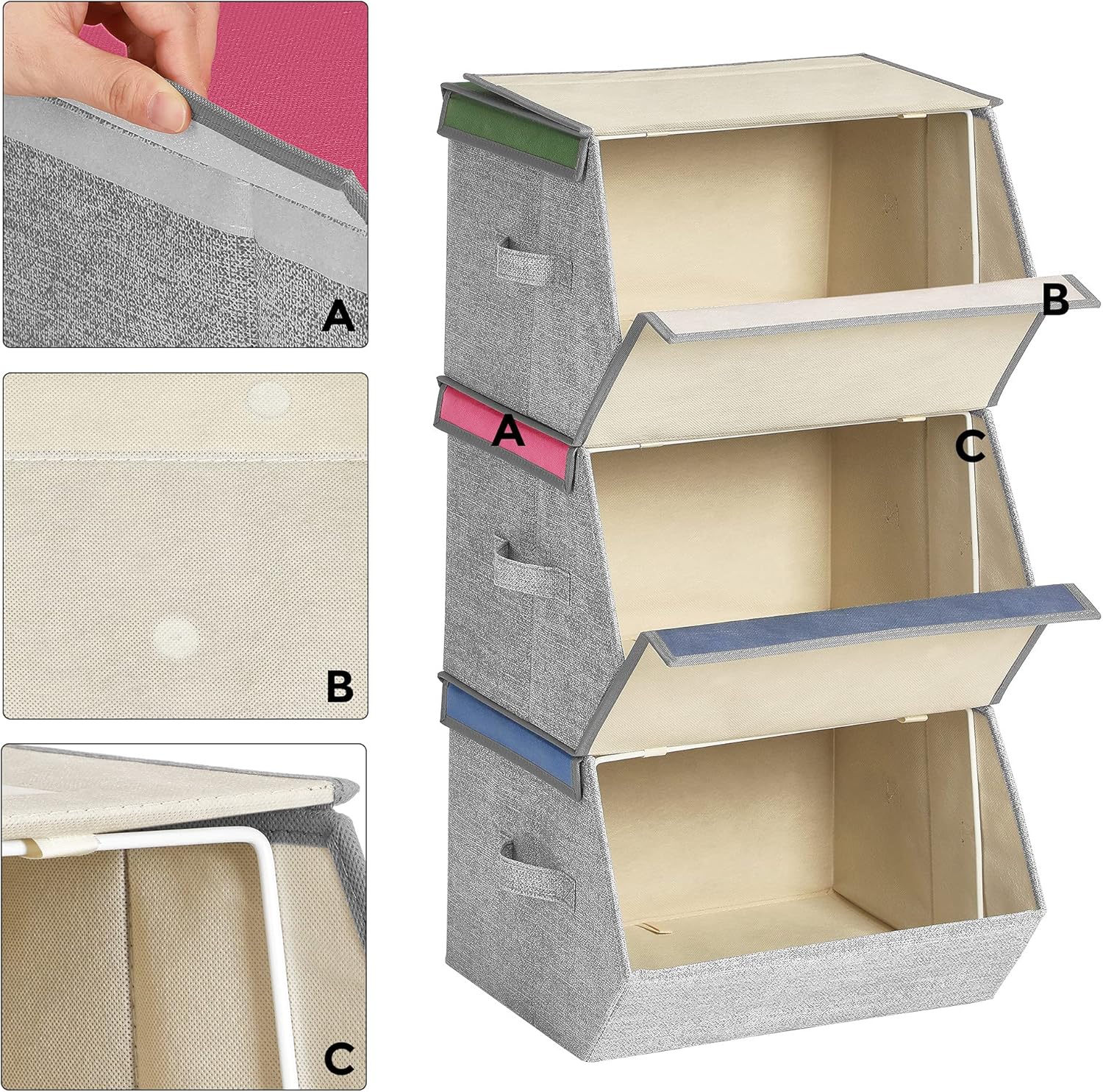 - [Magnetischer Deckel] Stapeln Sie die 3 bunten Boxen übereinander und lassen Sie Ihr Kind einen Deckel öffnen. Was passiert...? Der Deckel haftet an der Box darüber! Ist es Magie? Magnetstreifen halten die Deckel offen und erleichtern das Aufräumen