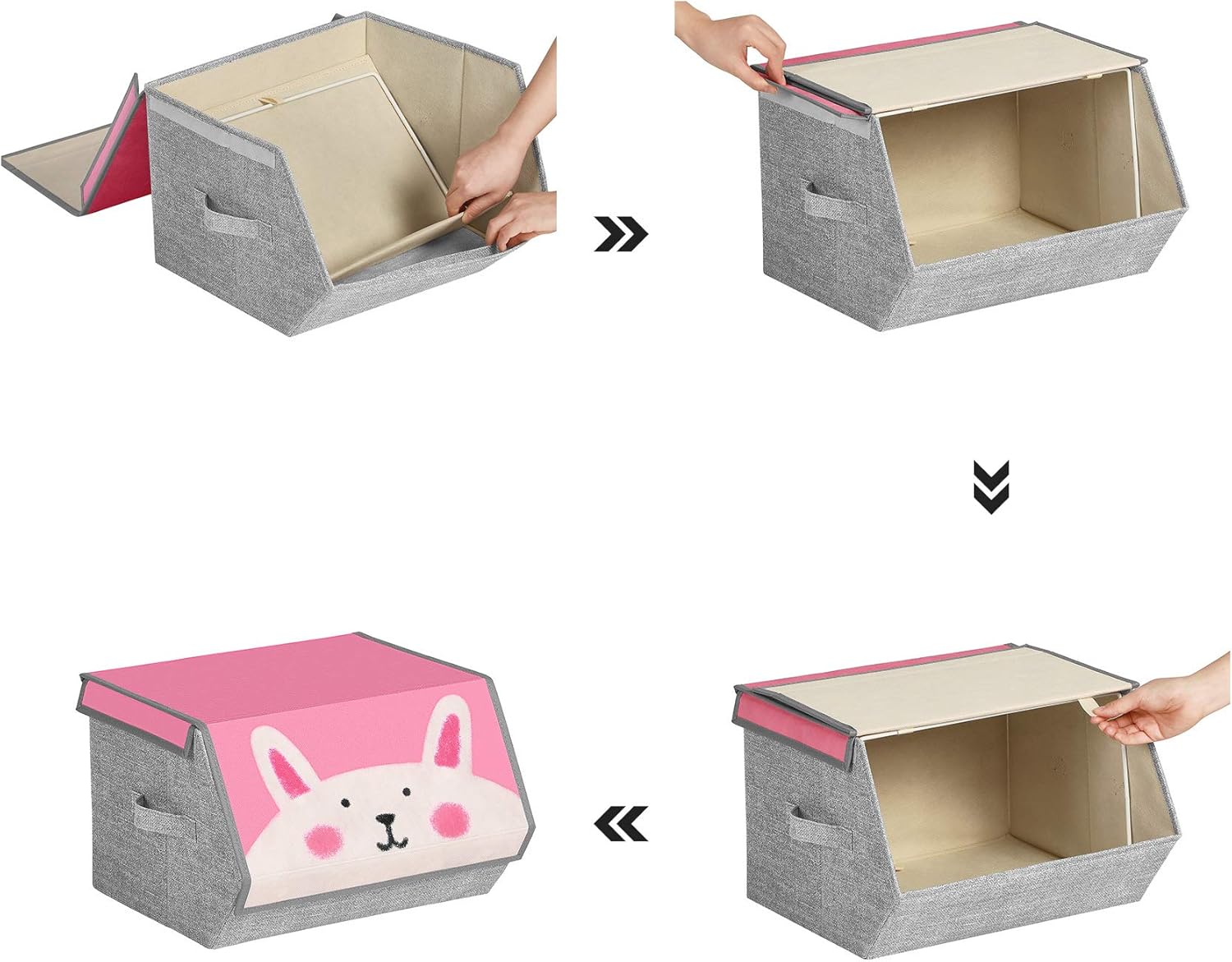 - [Leicht zu transportieren] Nur 0,3 kg pro Aufbewahrungsbox! Ihr Kind kann die Faltboxen ganz einfach an den seitlichen Griffen hochheben! Die Tier-Motive werden es dazu begeistern, die Boxen von selbst vom Wohnzimmer ins Kinderzimmer zu tragen