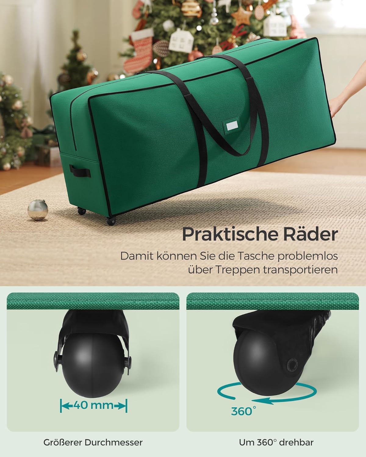 • [Mit Leichtigkeit organisieren: Etikettenhalter] Kein Suchen mehr in Kartons! Diese rollende Aufbewahrungstasche hat einen praktischen Etikettenhalter, damit Sie Ihre Weihnachtsdekoration im Handumdrehen kategorisieren und auffinden können
