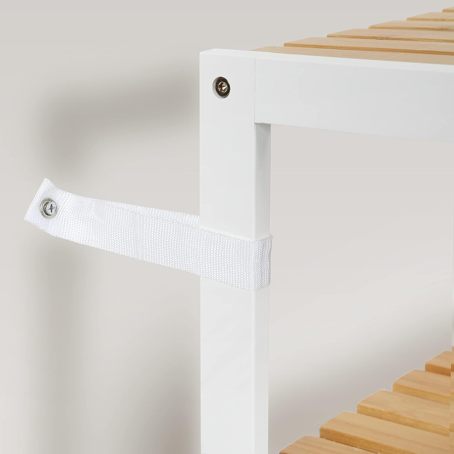 • [Bambusleisten machen den Unterschied] Stellen Sie Ihre Gegenstände beruhigt auf dieses Badregal – Aus 100% Bambus gefertigt, besitzt es eine hohe statische Belastbarkeit (8 kg pro Ablage). Die Bambusleisten sind zudem nicht zu eng nebeneinander