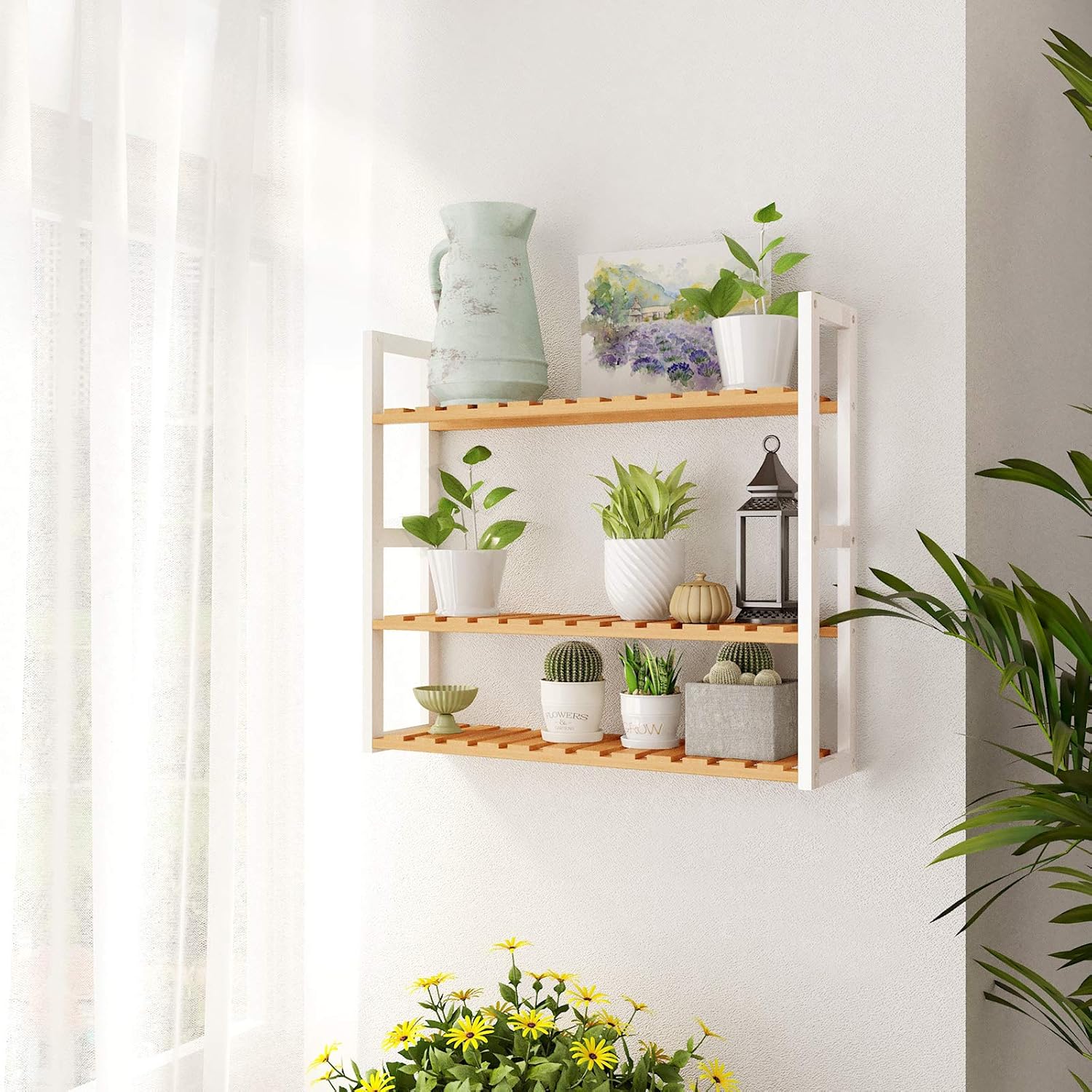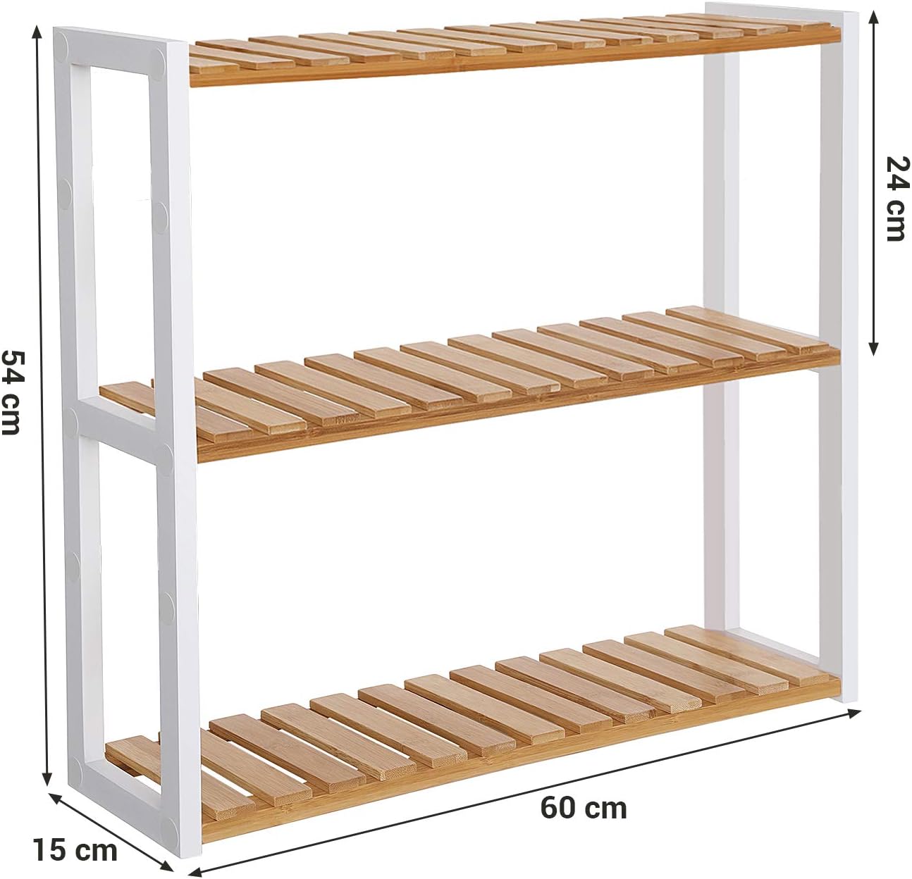 SONGMICS Badregal, Badezimmerregal, Bambus-Regal, Pflanzenregal mit 3 verstellbaren Ablagen, Wandmon