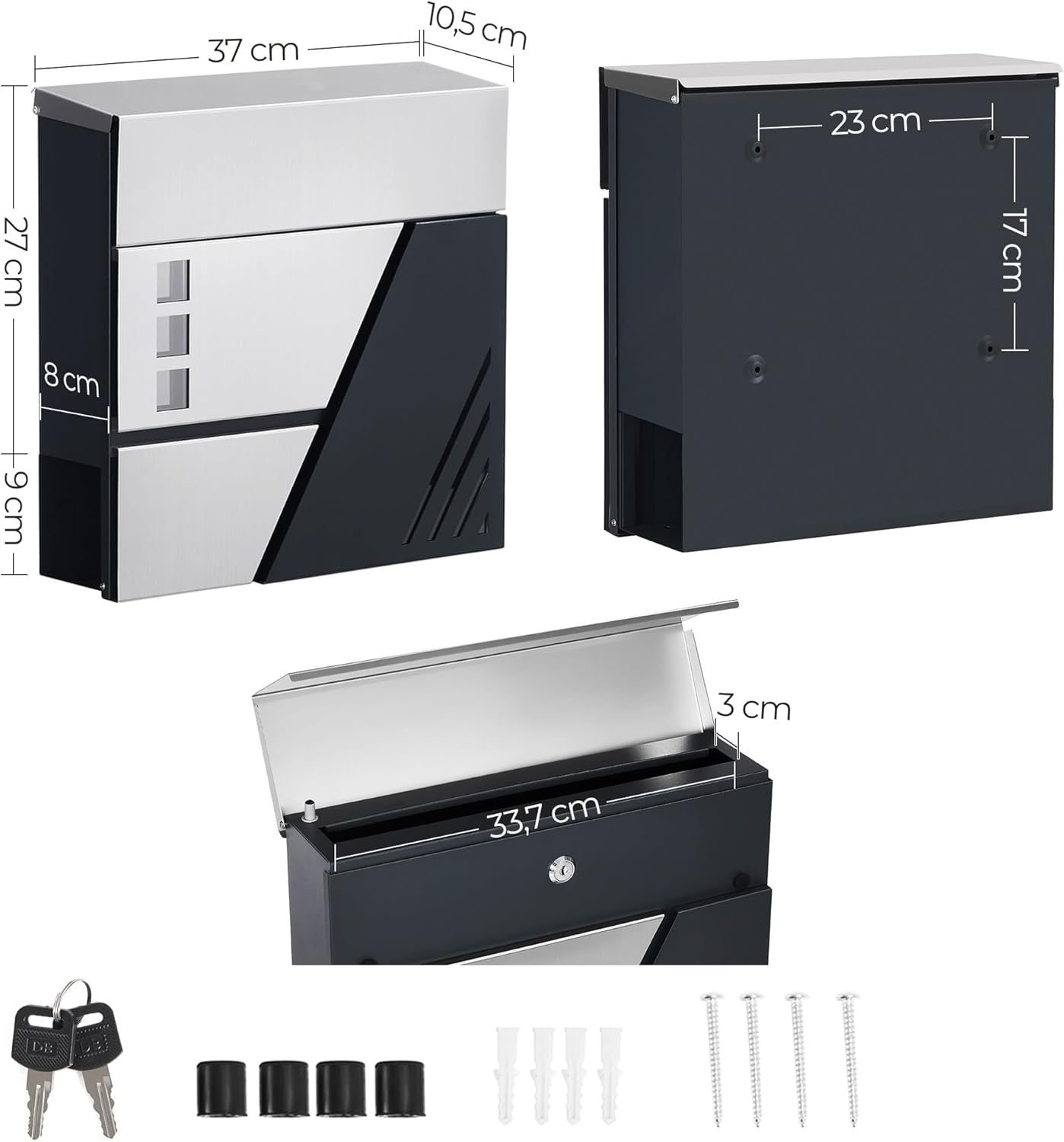 SONGMICS Briefkasten, 2er Set, Wandbriefkasten mit Sichtfenster, für Haustür, mit Schloss und Schlüs