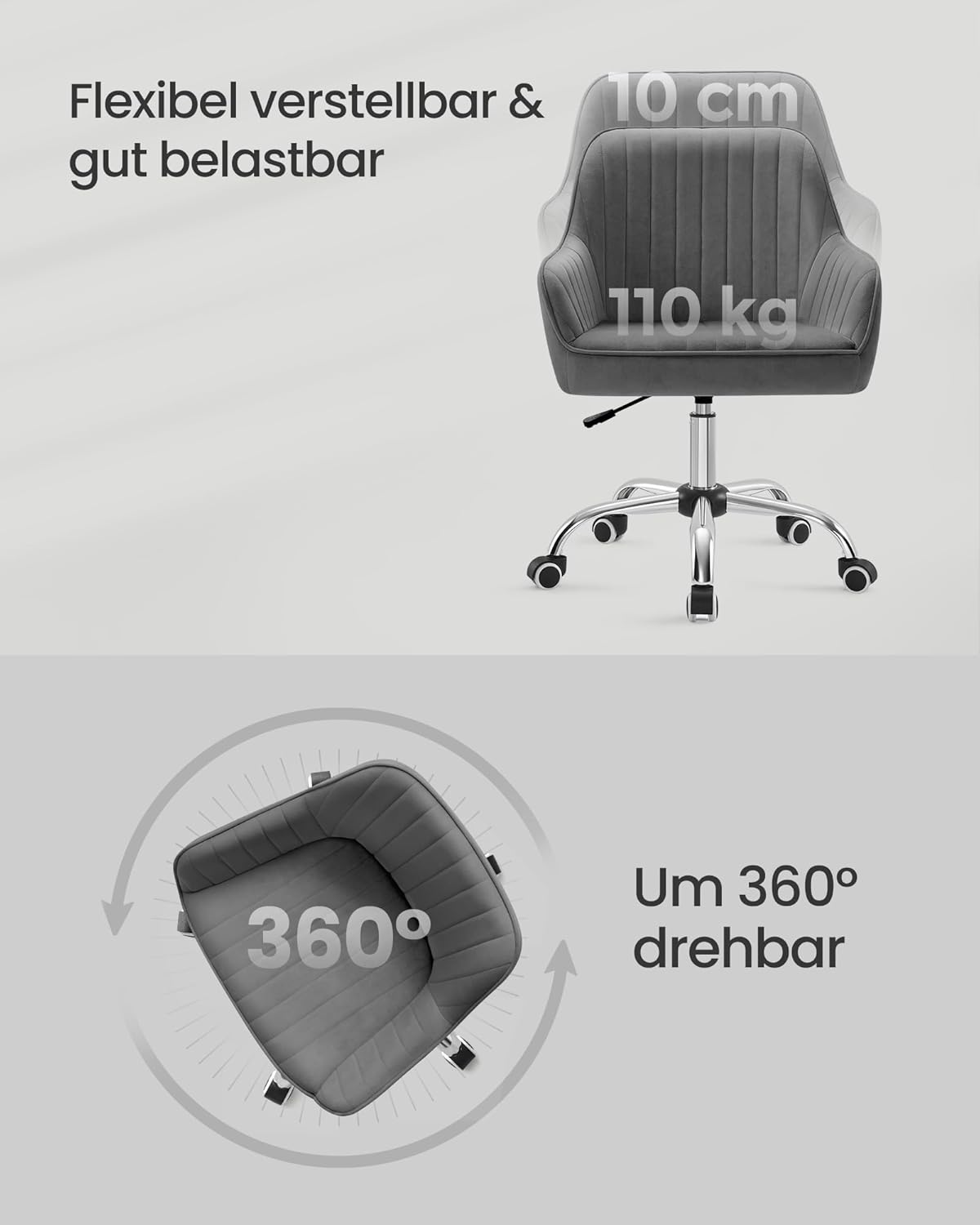 SONGMICS Bürostuhl, Drehstuhl mit Samtbezug, Schaumstoffpolsterung, höhenverstellbar, für Arbeitszim