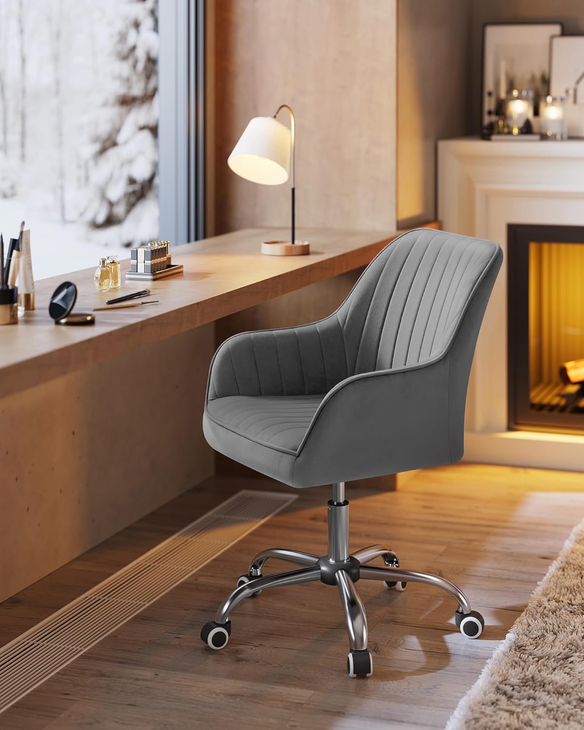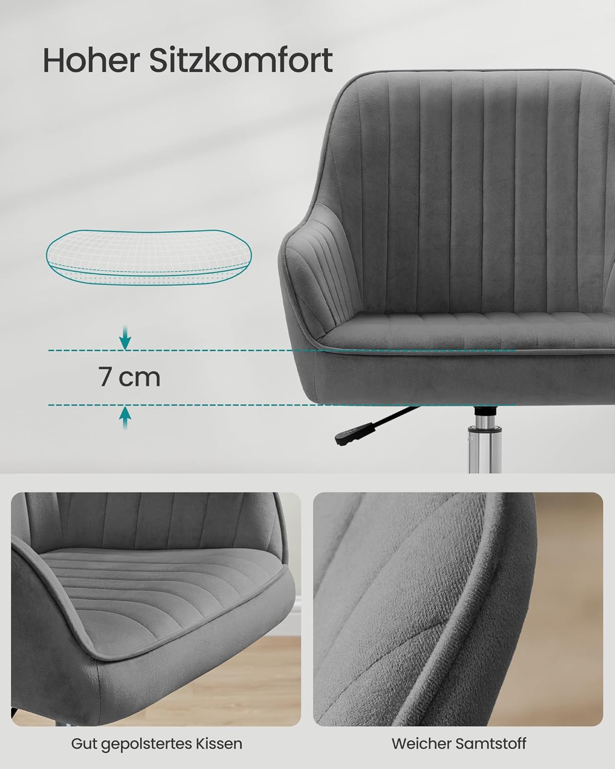 • Möchten Sie von der Couch arbeiten? Wir haben hier eine Lösung: Dank des weichen Samtbezugs und des gut gepolsterten Schaumstoffs bietet dieser Drehstuhl so viel Komfort wie ein Sofa. Jetzt können Sie bequem und voller Energie arbeiten