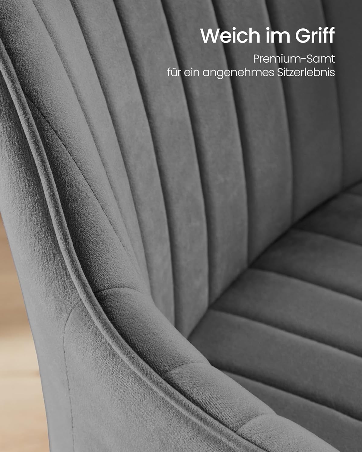 • Kein Stil? Keine Chance! Samtoberfläche und leicht geschwungen geformte Rückenlehne verleihen diesem Stuhl einen attraktiven Charme. Wohin passt dieser Stuhl? Auf der Arbeit, im Homeoffice oder in der Hausbar? Er sieht überall gut aus!