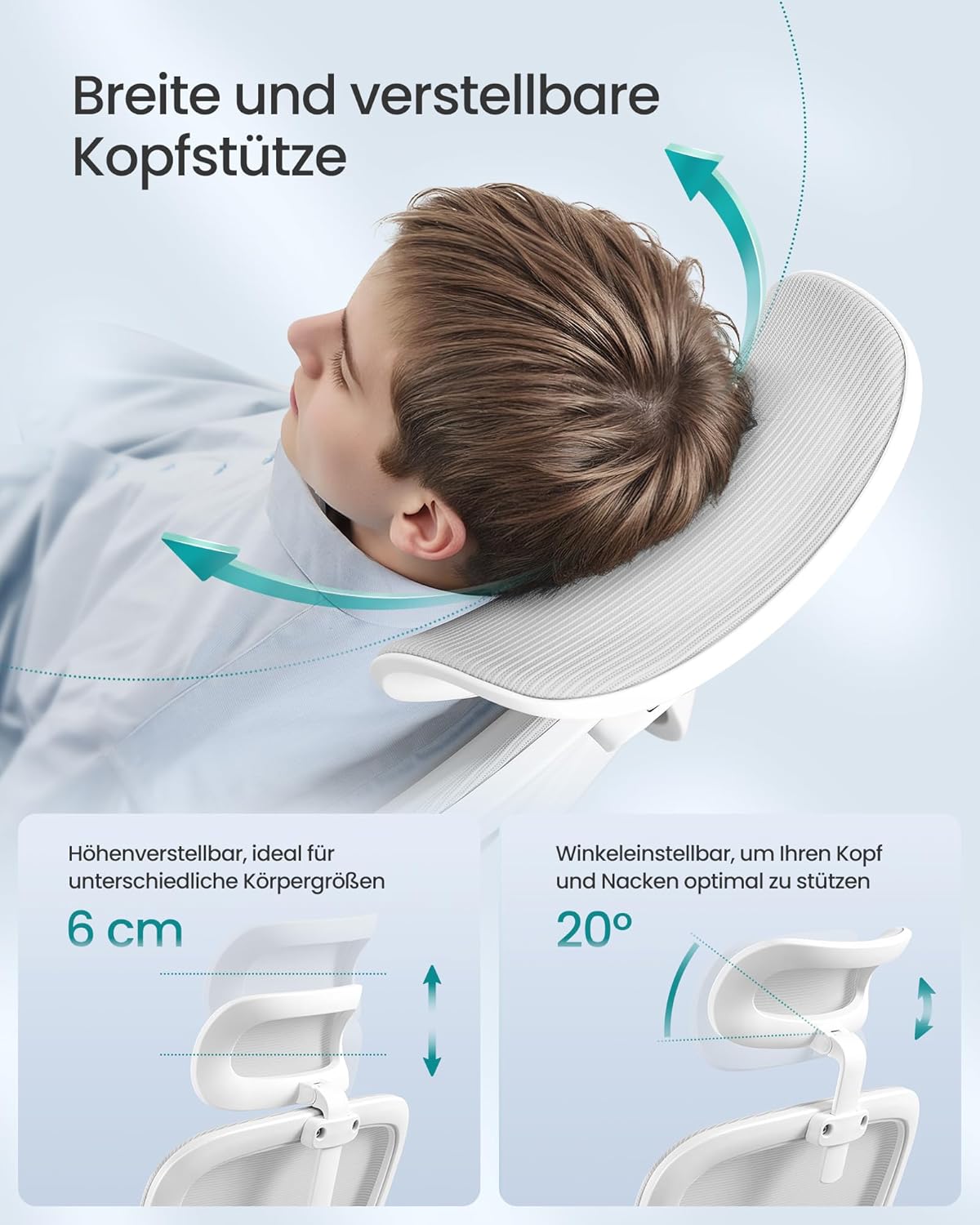 • [Ergonomischer Bürostuhl] Die S-förmige Rückenlehne schmiegt sich eng an Ihren Körper an, und mit der verstellbaren, gepolsterten Lendenwirbelstütze und Kopfstütze wird Ihr Rücken und Nacken gut gestützt