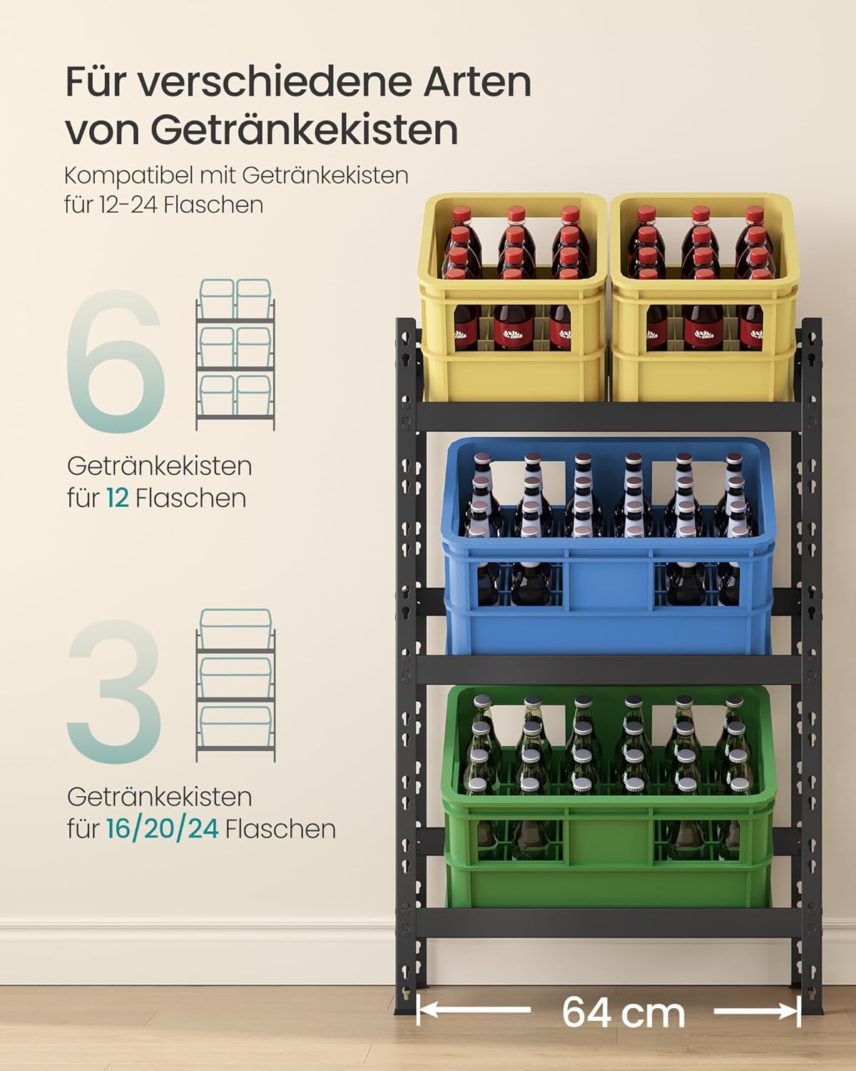 - 【GEEIGNET FÜR VERSCHIEDENE ARTEN VON GETRÄNKEKISTEN】Kompatibel mit Getränkekisten für 12-24 Flaschen; hat Platz für 6 Kisten mit 12 Flaschen oder 3 Kisten mit 16/20/24 Flaschen