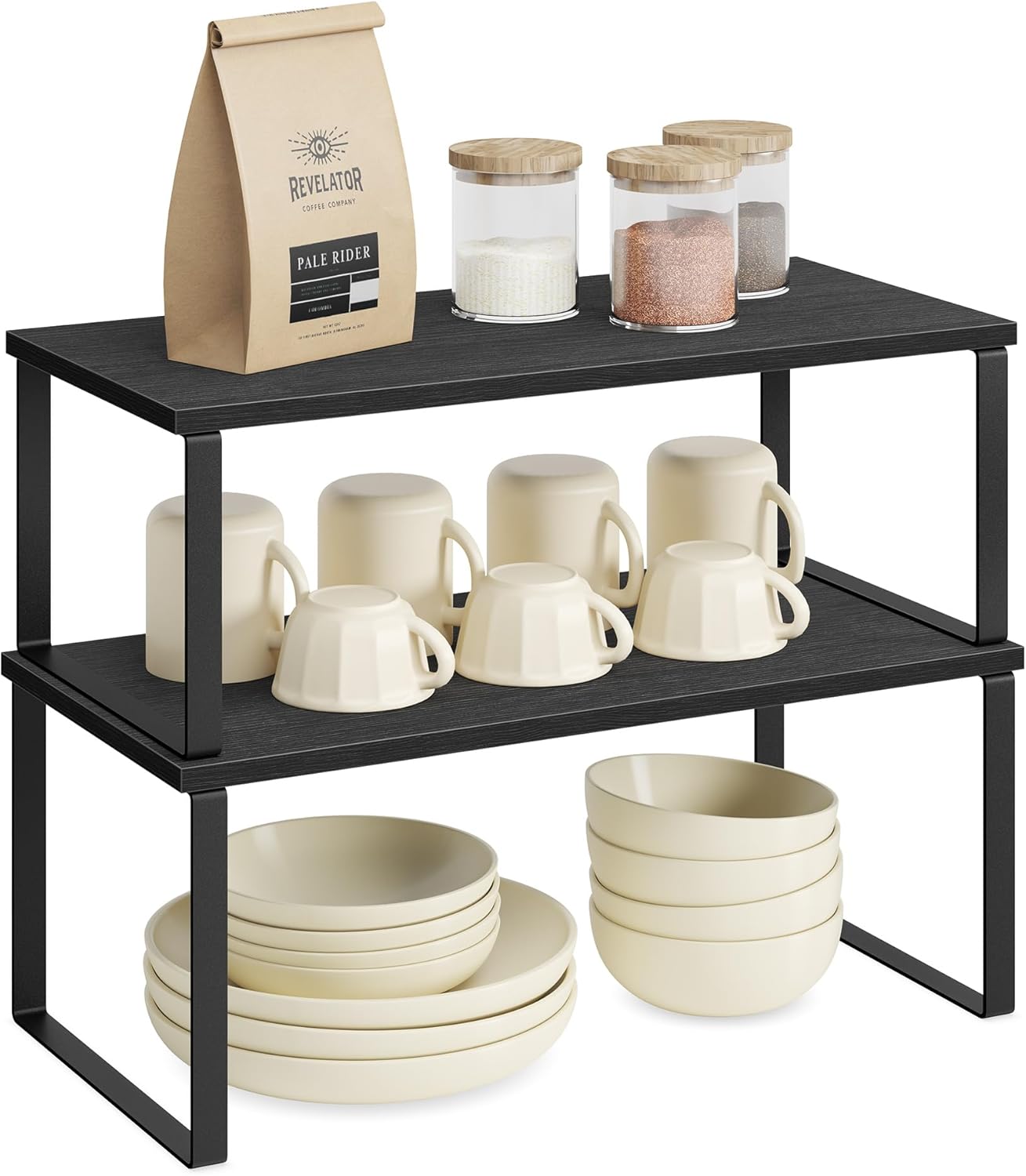 - [Was Sie bekommen] 4 elegante Aufbewahrungsregale, die Sie stapeln, erweitern oder an verschiedenen Orten aufstellen können – eine grossartige Idee, um den Platz in Ihrem Schrank oder auf Ihrer Theke zu maximieren