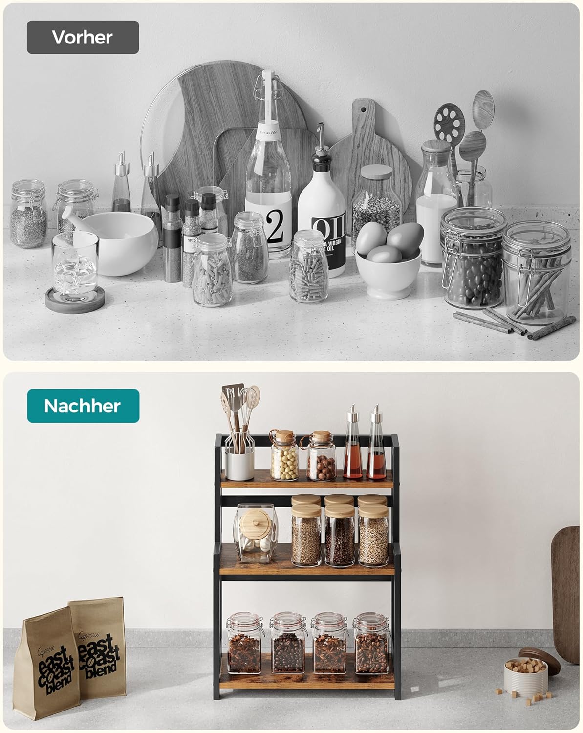 • 【DAS GEHEIMNIS DER SPITZENKÖCHE】Eine ordentliche Arbeitsplatte in der Küche! So werden sie beim Kochen nie den Überblick verlieren. Gönnen Sie sich dieses Regal mit 3 Ebenen und bewahren Sie alle Gewürze ordentlich auf. Zeit, Ihr Kochgeschick zu