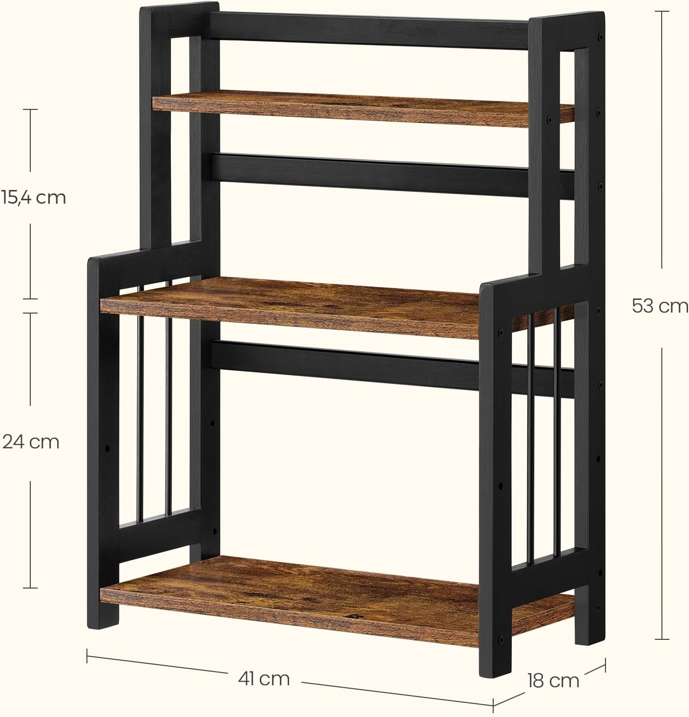 • 【ETWAS BESONDERES FÜR IHRE ARBEITSPLATTE!】Dieses Möbelstück ist kein langweiliges Regal, das in einer Ecke Ihrer Küche sein tristes Dasein fristet. Durch die vintagebraunen Ablagen und den schwarzen Rahmen wird es zum Highlight!