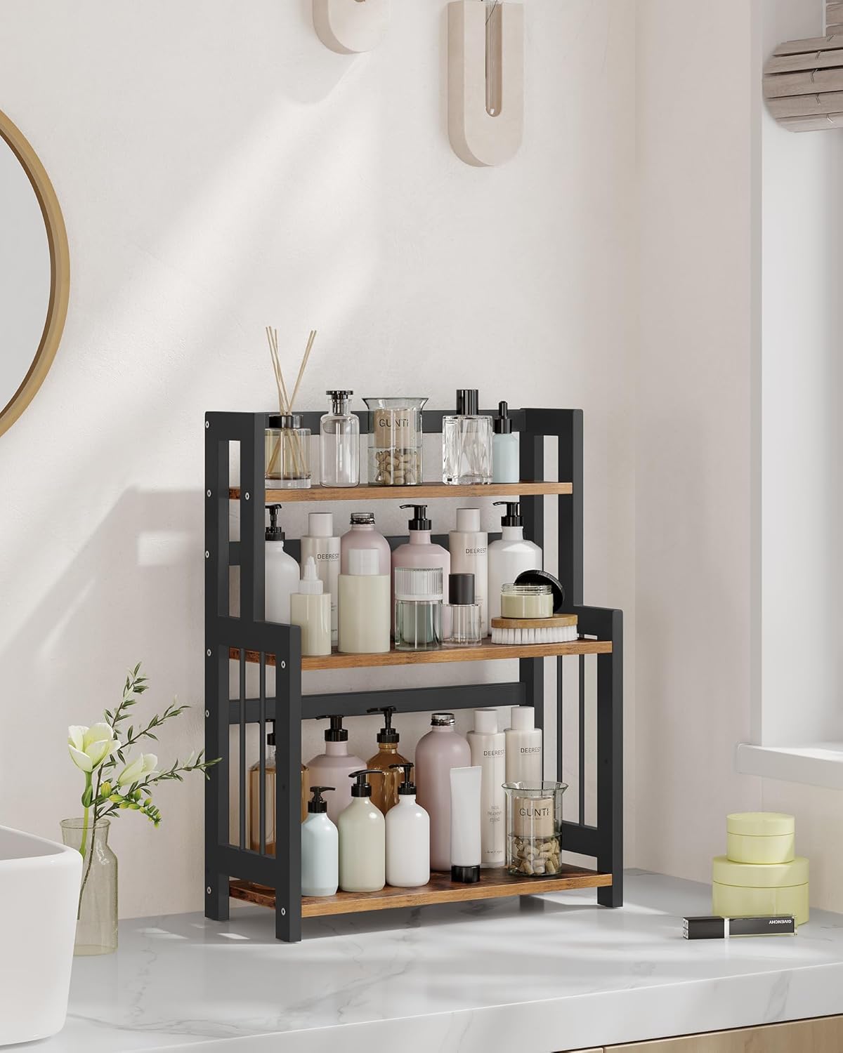 SONGMICS Gewürzregal mit 3 Ebenen, Küchenregal, Aufbewahrungsregal, für Arbeitsplatte, Bambusgestell
