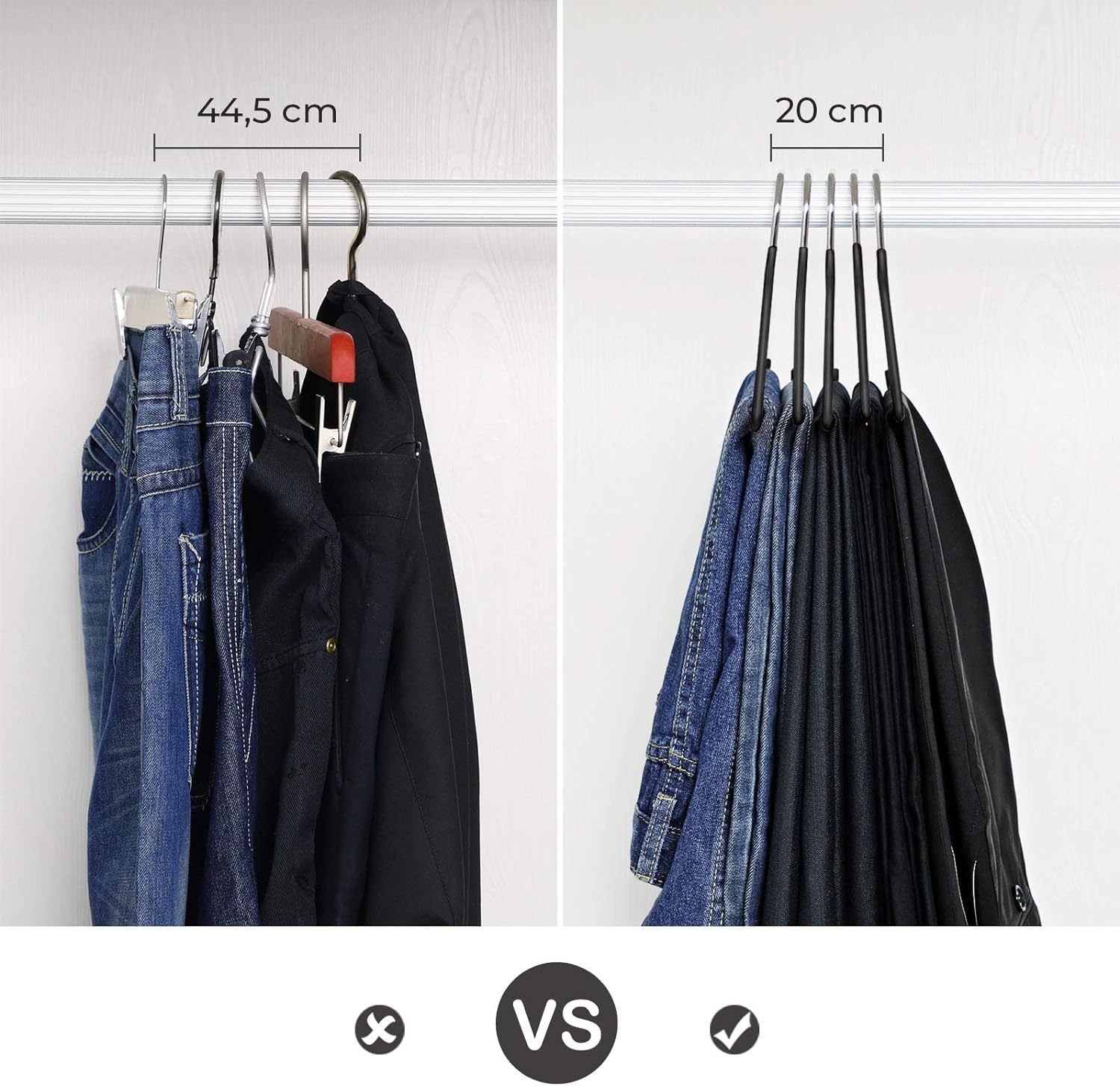 - Platzsparend, garantiert einen aufgeräumten Kleiderschrank: Dank des schlanken Designs können diese Hosenbügel (20er Set) ordentlich und platzsparend aufgereiht werden, um Ihre Garderobe organisiert aussehen zu lassen