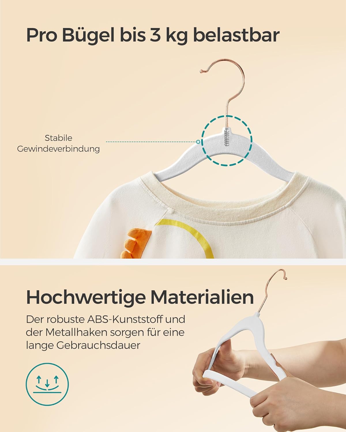 - [Robust und langlebig] Jeder Samtbügel ist aus hochwertigem ABS-Kunststoff und Metallhaken gefertigt und kann bis zu 3 kg tragen. Egal, ob Kinder-Winterjacken oder schwere Jeans, diese Kinderbügel kommen mit jeder Kleidung zurecht