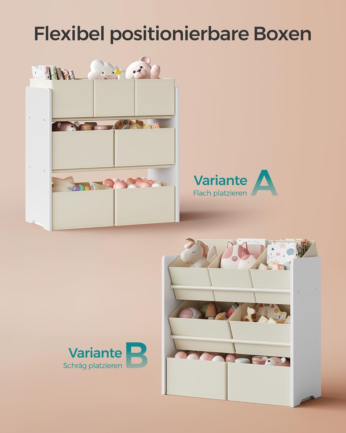 - [7 Stoffboxen für Spielzeug und Bücher] Dieses Kinderzimmer-Regal ist mit 4 grossen und 3 kleinen Boxen aus Vliesstoff ausgestattet und bietet Ihnen Stauraum, um unterschiedlich grosse Gegenstände wie Kuscheltiere, Bauklötze und Bücher aufzubewahren