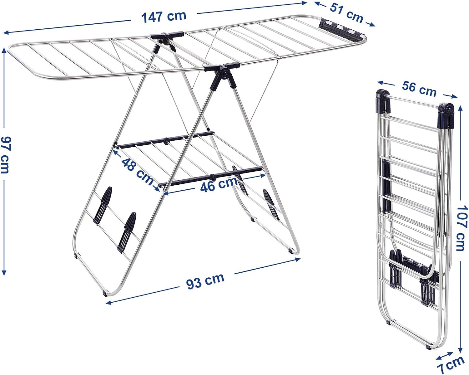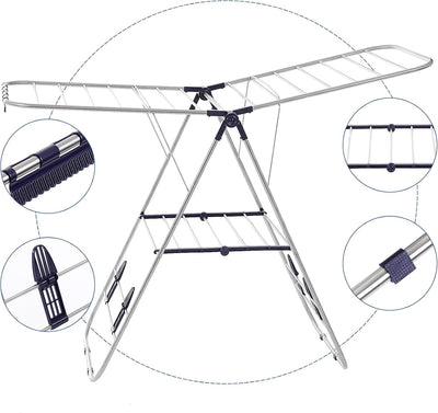 - HOCHWERTIGES MATERIAL - Aus rostfreien Edelstahlrohren ist der Wäscheständer besonders langlebig und witterungsbeständig, optimal für die Verwendung im Aussen- und Innenbereich; zusätzliche Kunststoffkappen an der Füsse versprechen auch gute