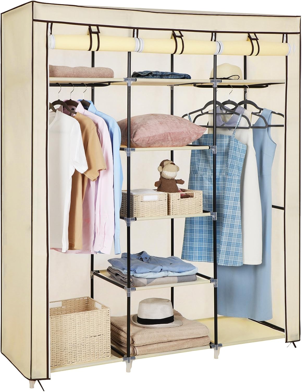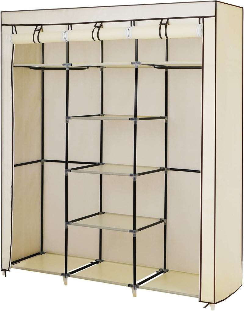 - WAS SIE BEKOMMEN: Einen Kleiderschrank, welcher aus Vliesstoff besteht und zudem mit Hängestangen sowie Regalebenen ausgestattet ist, und eine optimale Möglichkeit, das Kleiderchaos selbst in kleinen Appartments zu beseitigen