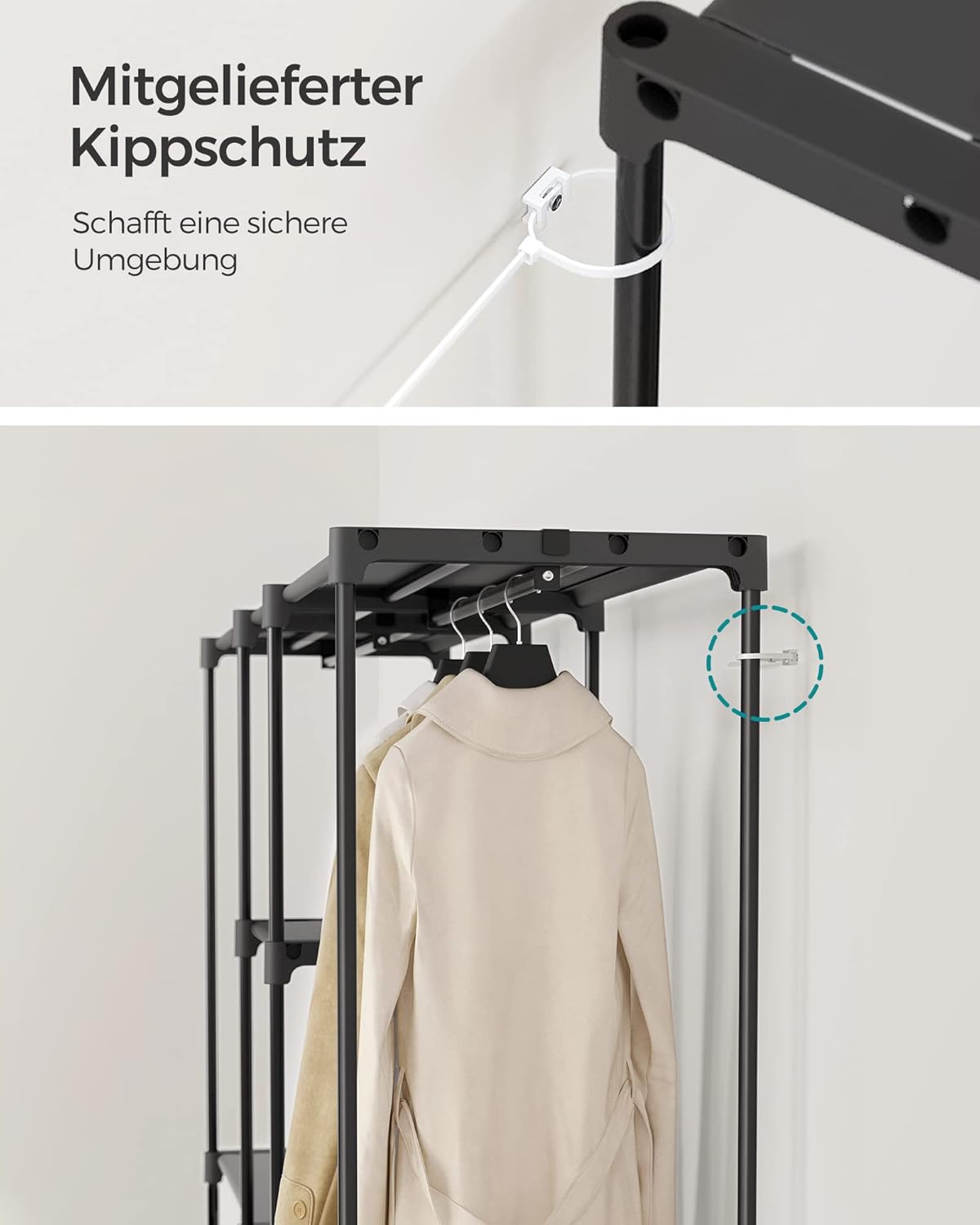 - [Kippschutz für mehr Sicherheit] Mit dem mitgelieferten Kippschutz können Sie diesen offenen Kleiderschrank an der Wand befestigen – für ein sicheres Zuhause für Sie und Ihre Familie