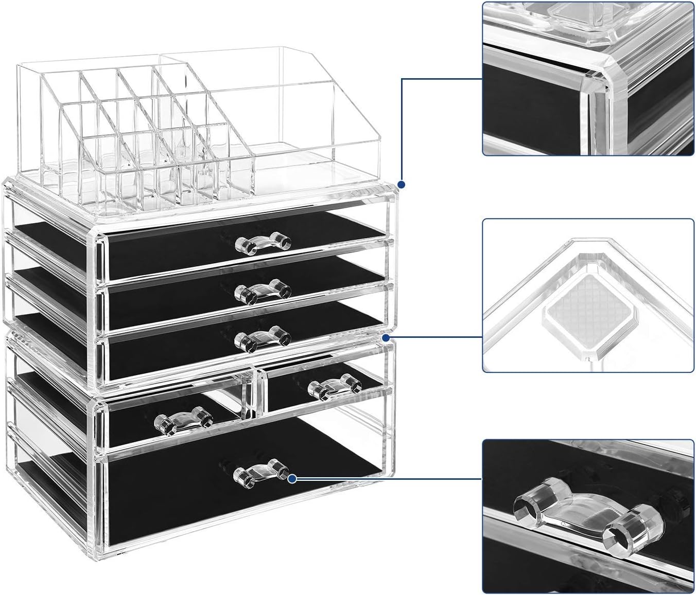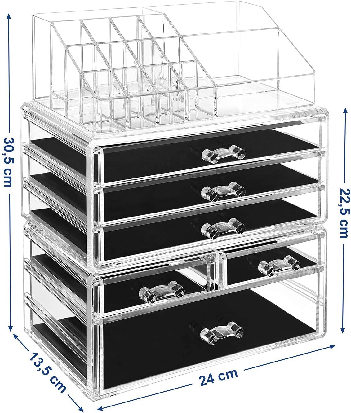 - Alles übersichtlich, sieht schick und edel aus - Transparent wie Kristallglas, dadurch kann man gut sehen, was drin ist und erspart sich lästiges Kramen. immer standfest stellen, während Ihre Schmuckstücke oder das diverse Schminkwerkzeug in